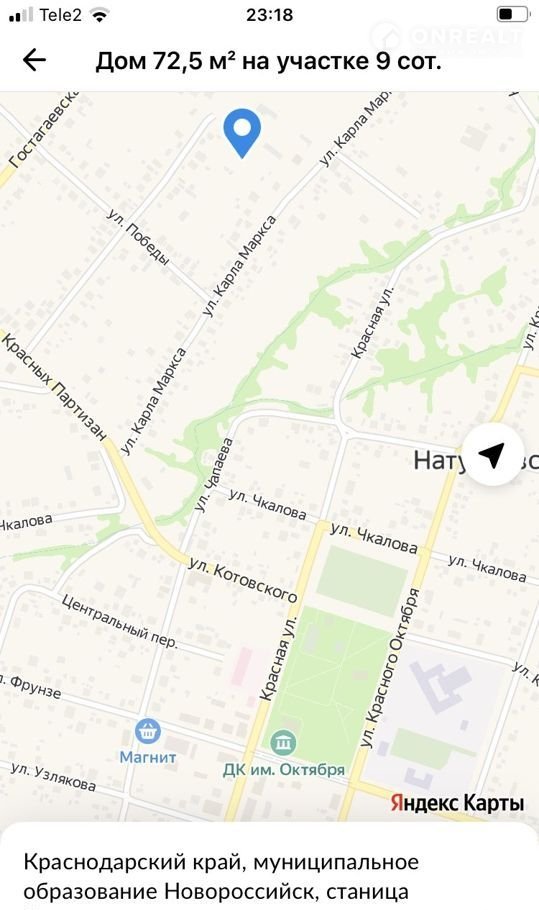 1-этажный дом, 72.5 м2, на продажу в станице Натухаевской, улица Карла Маркса