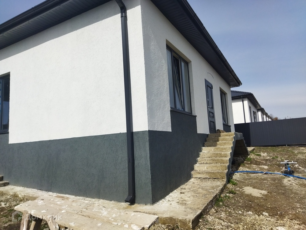 Объект №39581. В станице Натухаевская, в новом коттеджном поселке на 22 дома, на участке 4,1 сотки, продается дом площадью 85 м2. Назначение земли ИЖС, забор из металлопрофиля по периметру, откатные ворота, забетонированная площадка для авто. У дома ленточный фундамент, монолитный каркас, стены из керамзитоблока, утепление - пенопласт, облицовка - декоративная штукатурка, кровля – металлочерепица цвета графит. В помещении три спальни, кухня-гостиная, санузел и тирраса. Отделка в доме чистовая, с хорошим ремонтом: на стенах обои, на полу в спальнях ламинат, санузел, коридор, кухня-гостиная на полу керамогранит. Установлены межкомнатные двери, сантехника и т.д. Теплый пол везде по плитке. Дороги в поселке отсыпаны щебнем. Коммуникации: электричество 15 кВт, 3 фазы подключено и разведено по дому, вода скважина 80 м с насосом заведена в дом, канализация септик 4,5 м3. Дом расположен в станице Натухаевская которая находится между Новороссийском и Анапой. Благодаря расположению дома на возвышенности, не подтопляемый, не водоохранная зона, вам открываются прекрасные видовые характеристики. В станице имеется абсолютно вся необходимая инфраструктура, школа, садики, магазины, банкоматы, фитнес клуб и т.д. До пляжей на Чёрном море от 20 минут на машине, до Азовского от 1,5 часов. Вокруг станицы много винодельческих ферм с ресторанами, гольф клуб и в скором времени появится даже аквакомплекс с торговым центром в соседней станице.