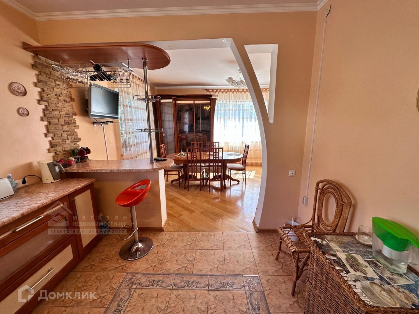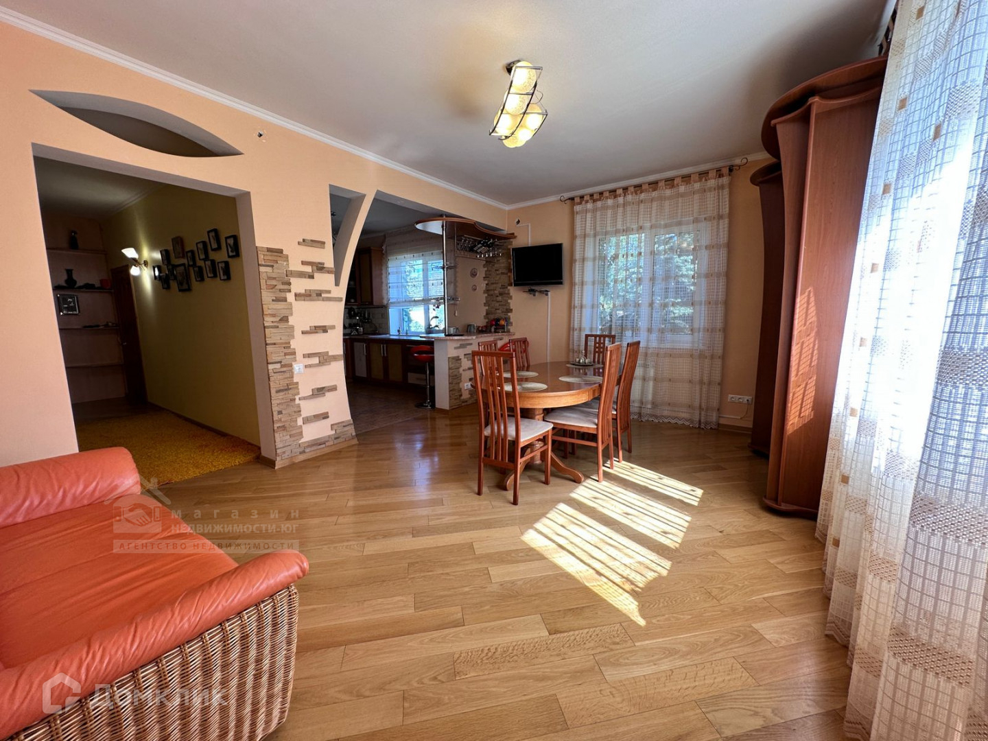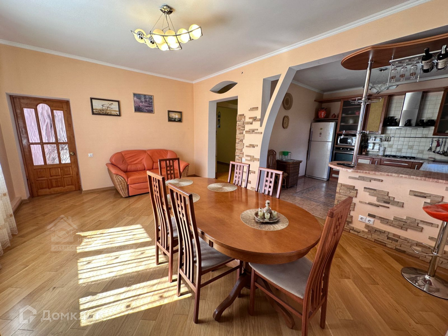Зона кухни-гостиной очень уютная и позволит собирать большие компании гостей.