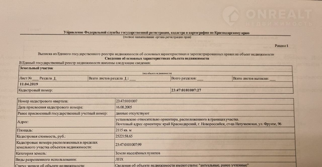 Стоимость недвижимости: