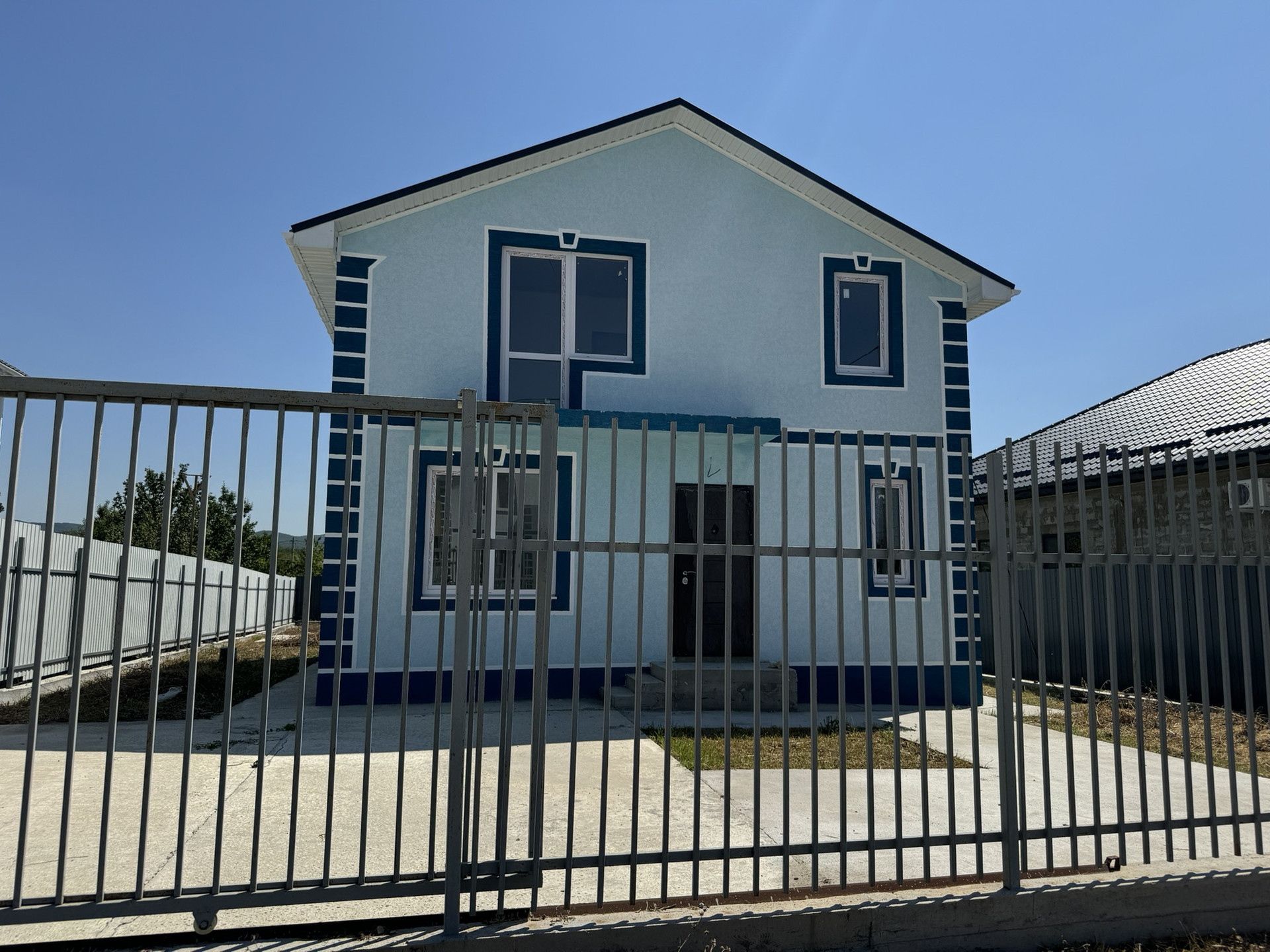 Бетонированная дорожка к дому, место под авто, заборпо периметру с калиткой и откатными воротами