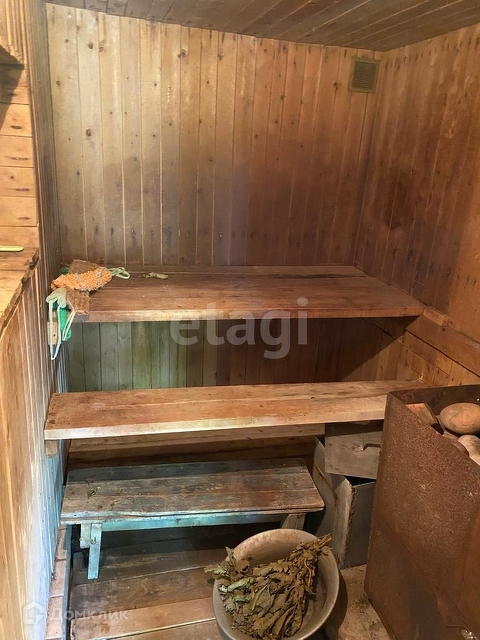 К дому пристроены летняя кухня с навесом, баня на газу, кладовая, гараж, подвал для консервации.