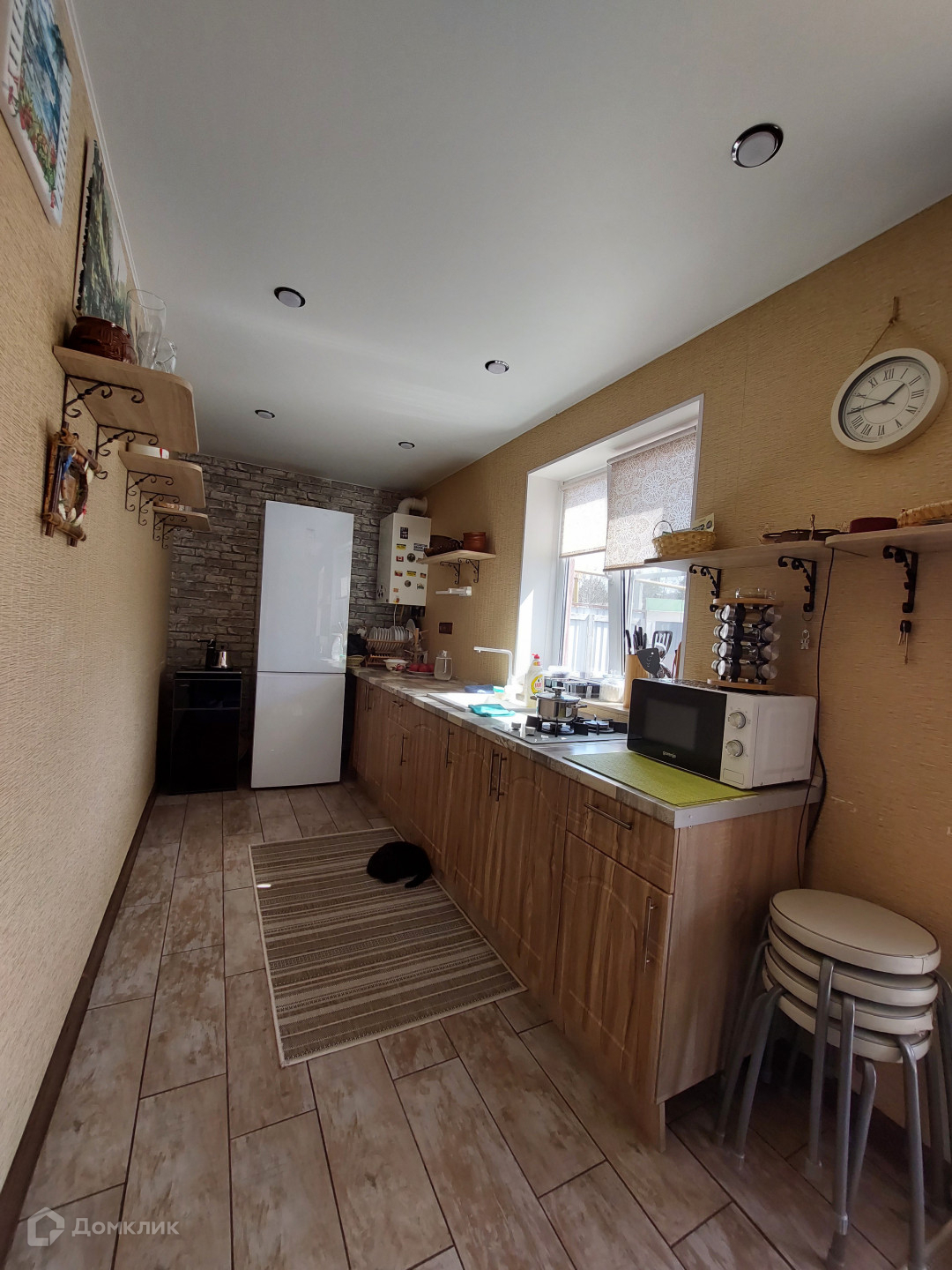 Очень уютный, чистый, светлый дом с ухоженным двориком, огородом с молодыми  деревьями и плодородной землей. Есть также отдельное незавершенное строение для летней кухни. Все коммуникации к нему подведены. Сам дом находится в центре станицы. Рядом школа, садик, клуб, магазины, амбулатория. Вся мебель и техника остается кроме телевизора.
