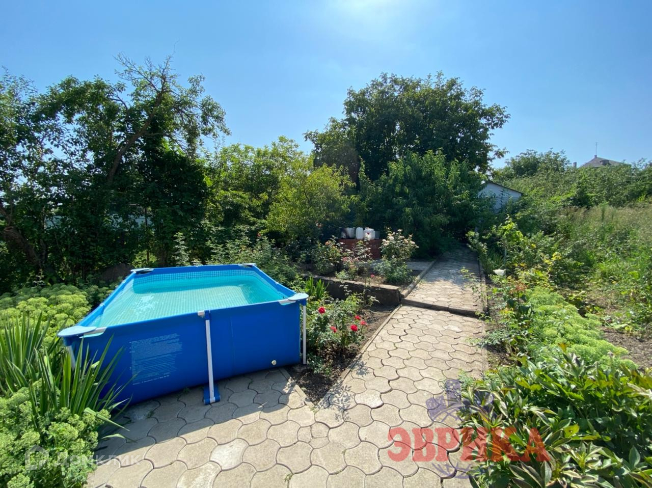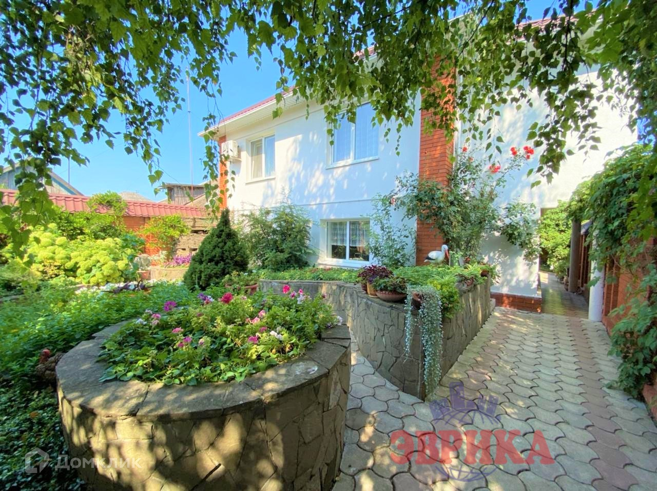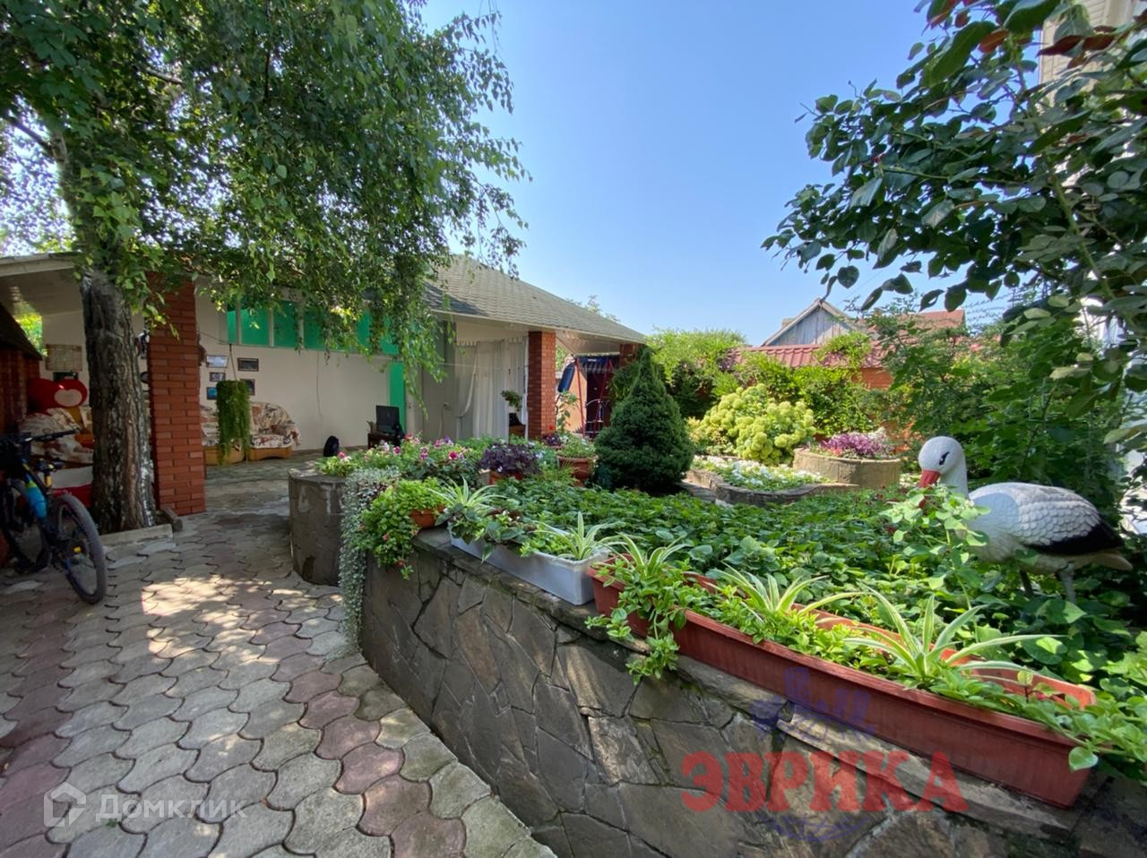 Двор ухоженный, выложен плиткой, во дворе  капитальный навес, на участке много плодовых деревьев. Большая придомовая территория, выложена плиткой. Находится на асфальтированной улице .