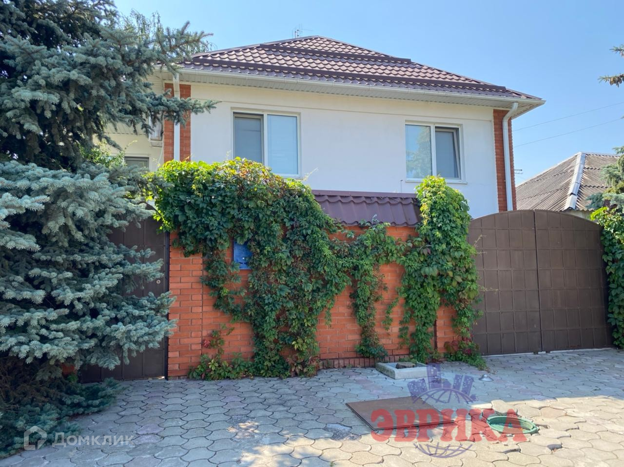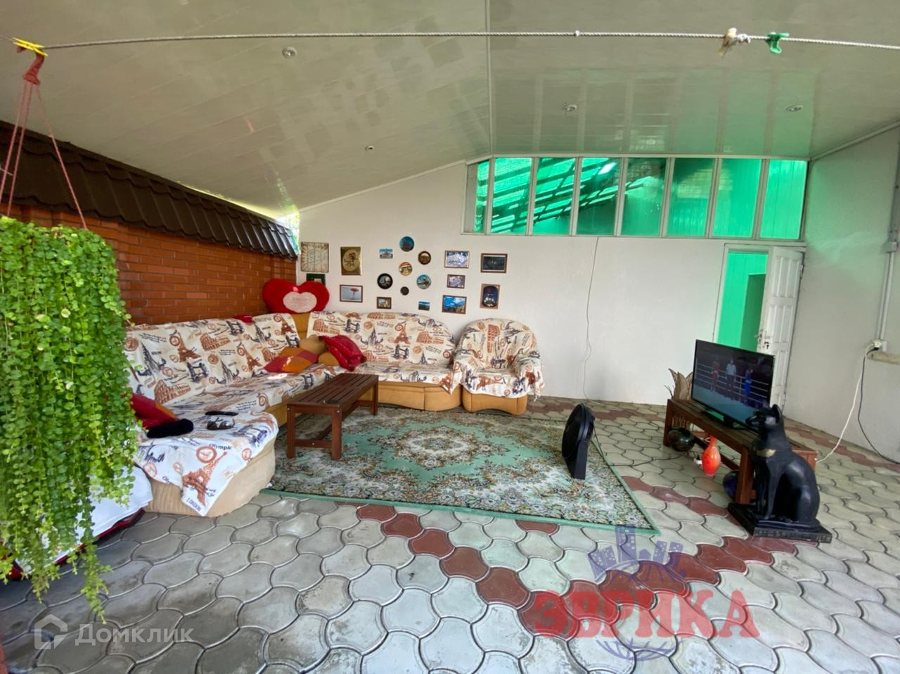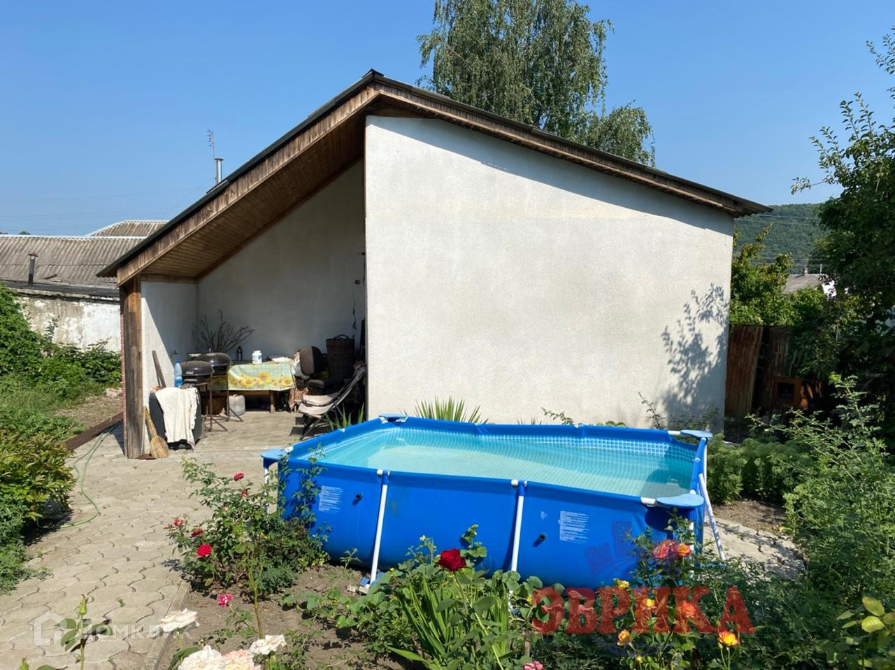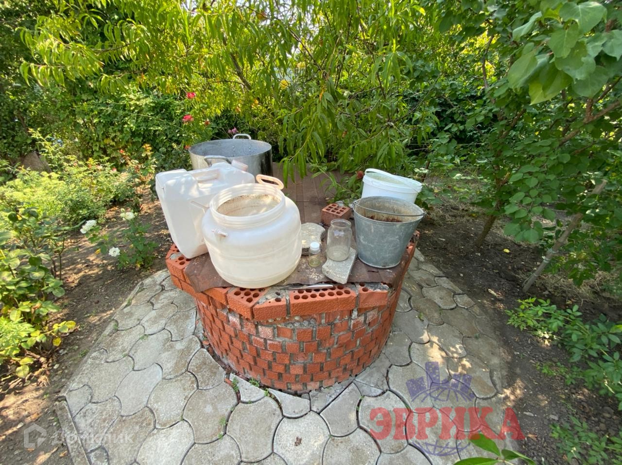 Двор ухоженный, выложен плиткой, во дворе  капитальный навес, на участке много плодовых деревьев. Большая придомовая территория, выложена плиткой. Находится на асфальтированной улице .