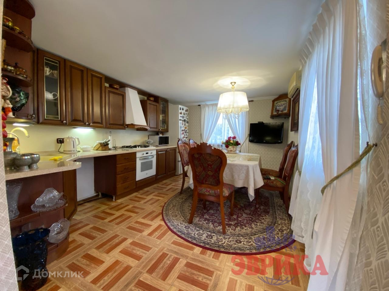В доме 6 комнат, просторная кухня -14,5 кв. м. ,кладовая ,гардеробная ;установлены 2 сплит системы.