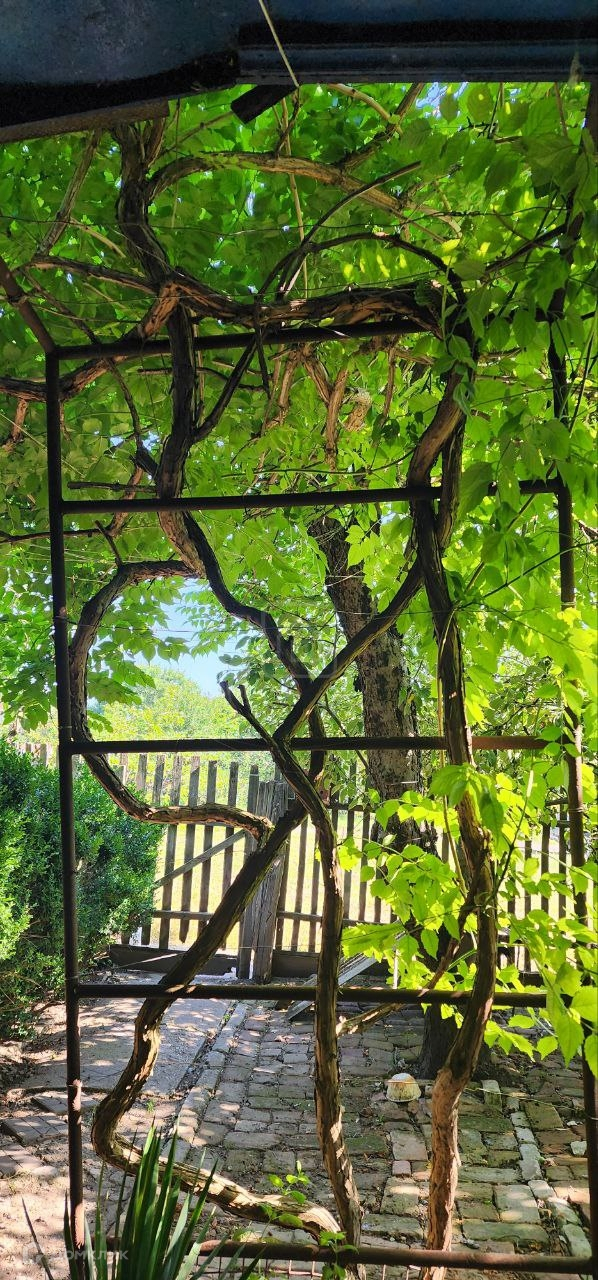 На территории участка есть отдельное здание с гаражом, комнатами и навесом, которые можно использовать по вашему усмотрению. Двор плавно переходит в хозяйственную зону с садом, огородом и теплицей, где можно выращивать свои собственные овощи и фрукты.