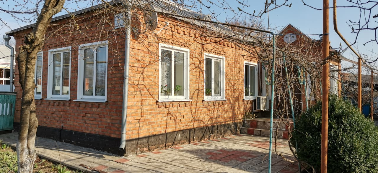 Продается дом общей площадью 68 кв.м частично с мебелью и бытовой техникой. Дом саманный, обложен кирпичом, пристроенная веранда, обшита сайдингом. Металлопластиковые окна. Установлена сплит система, спутниковая тарелка, телефон. Двор выложен плиткой. Жилая кухня кирпичная с газом, туалет, ванная. Между домом и кухней навес. Кирпичный гараж для машины. Просторный двор, также имеются хоз.постройки для ведения хозяйства, подвал, летний душ, колодец. Во дворе дома яблоневые деревья, груша, черешня, шелковица, виноград, айва, слива, боярышник, малина клубника, смородина, цветник. Площадь земельного участка 28 соток. Дом газифицирован, канализация, холодная и горячая вода. Улица центральная, до центра 20 мин пешком. Рядом магазин. Районный центр ст. Каневская находится в 40 км.