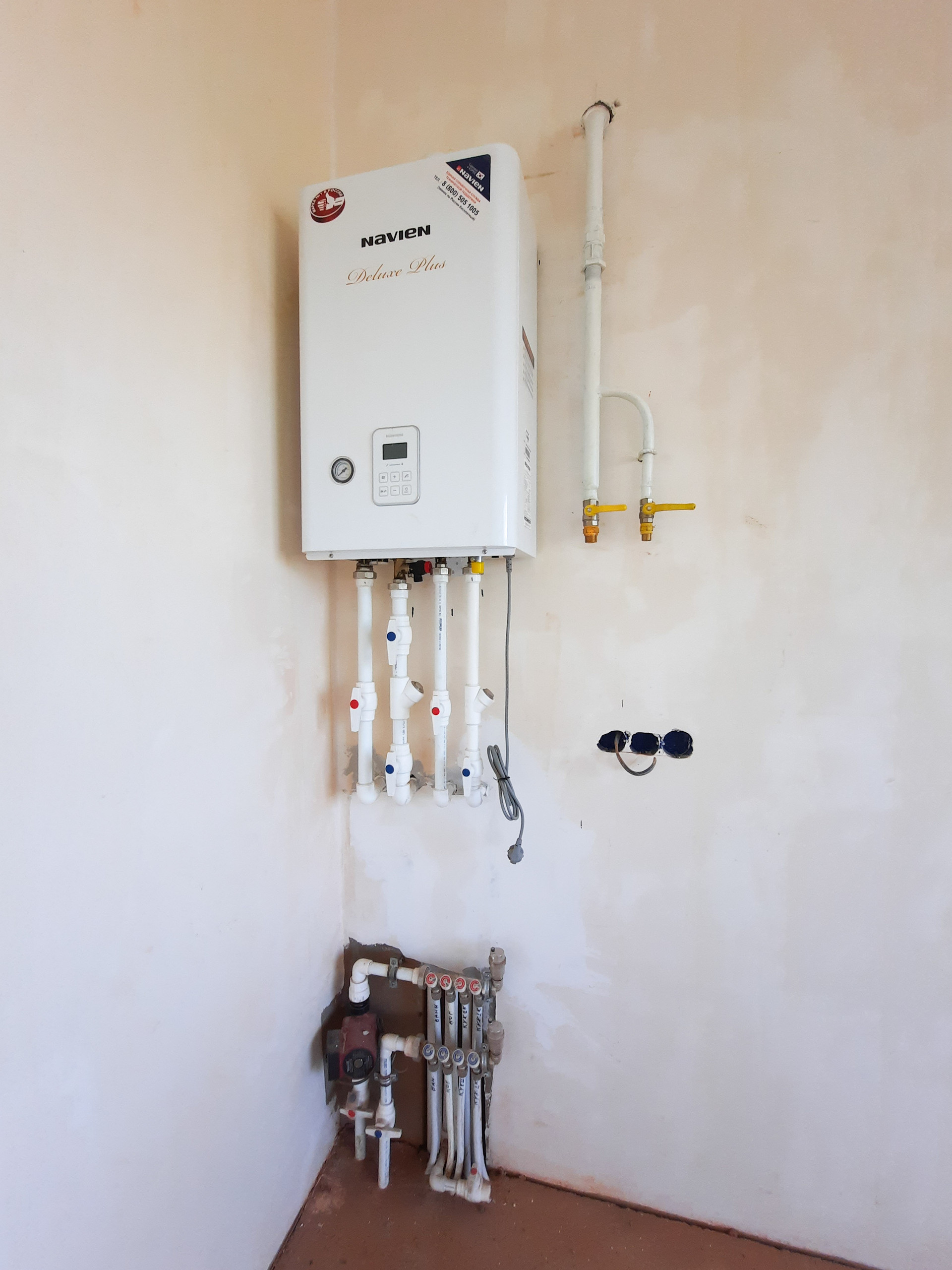 Установлен двухконтурный котёл отопления, бойлер для горячей воды