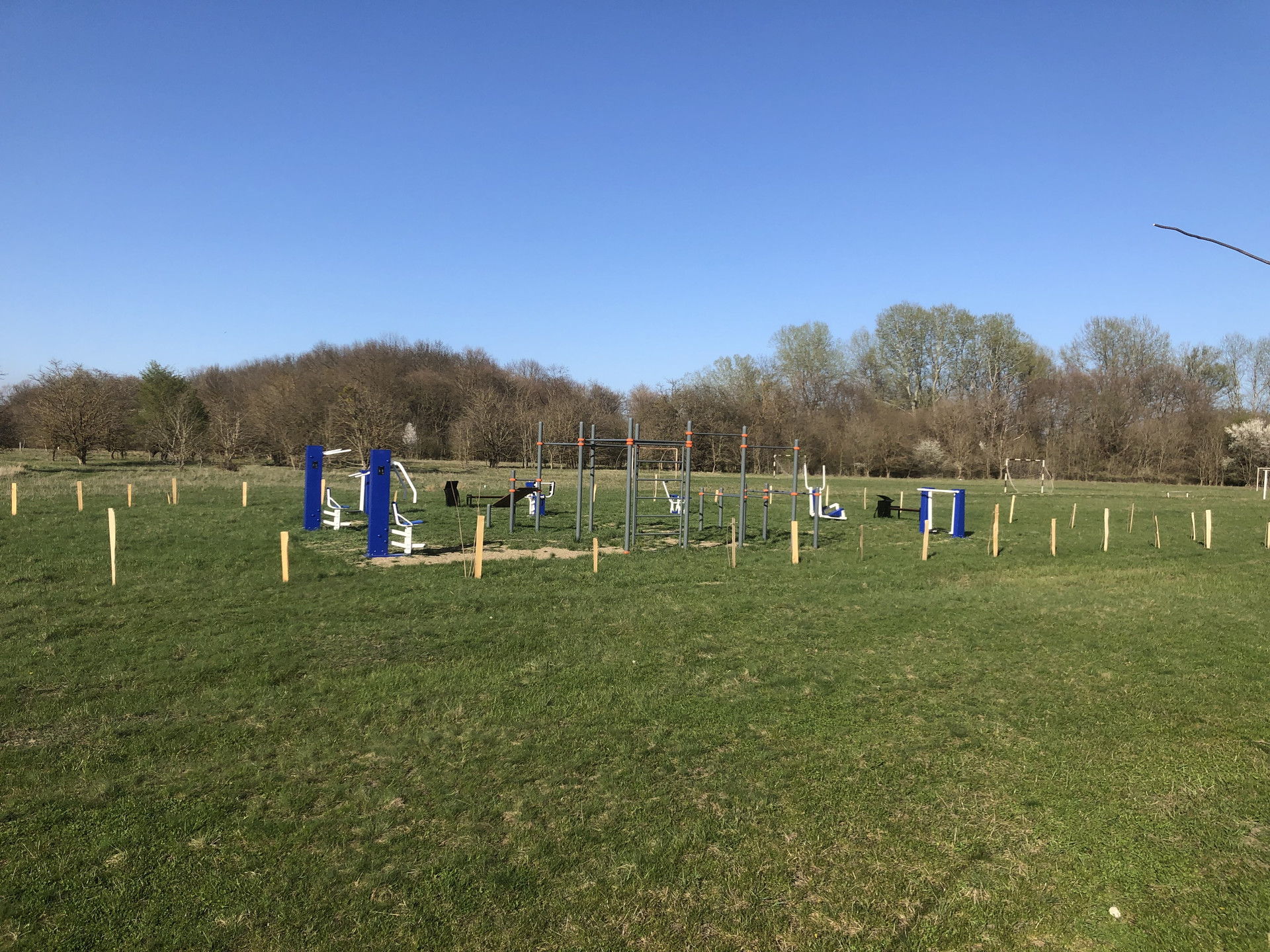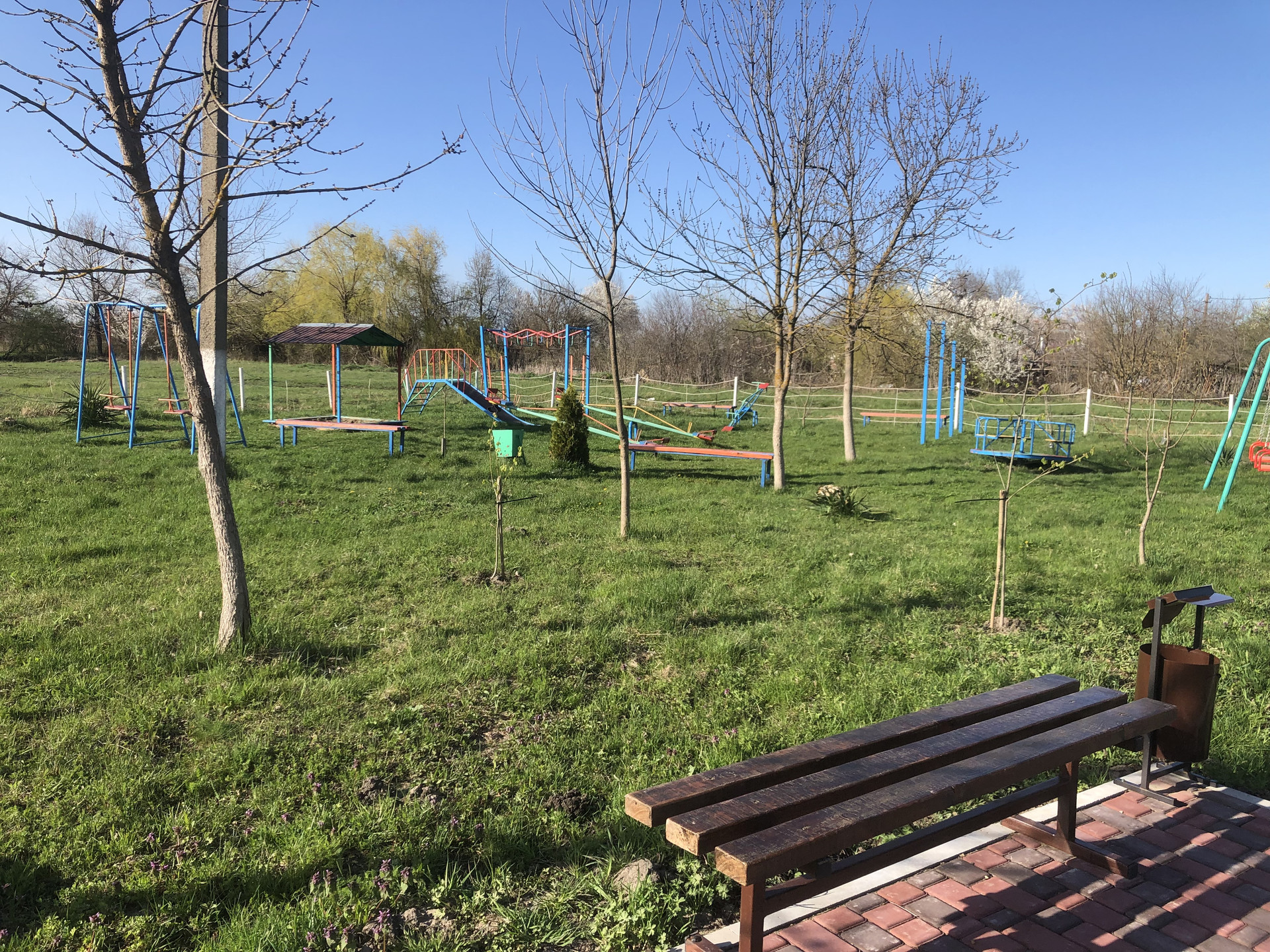 Недалеко детская площадка, площадка с тренажерами .