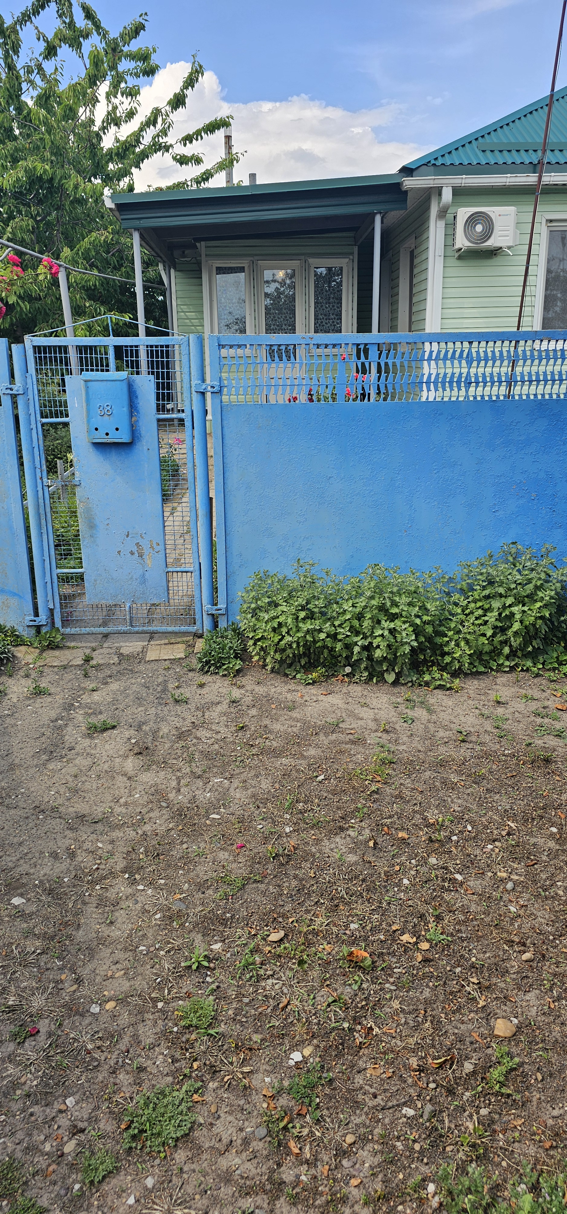 Во дворе хозпостройки из газоблоков, все функционируют по назначению, летняя кухня с сетевым газом и водой, уютная беседка из плетущегося виноградника, летом прохладно, подведен свет. Во дворе вода, подвал, летний душ, уличный туалет.