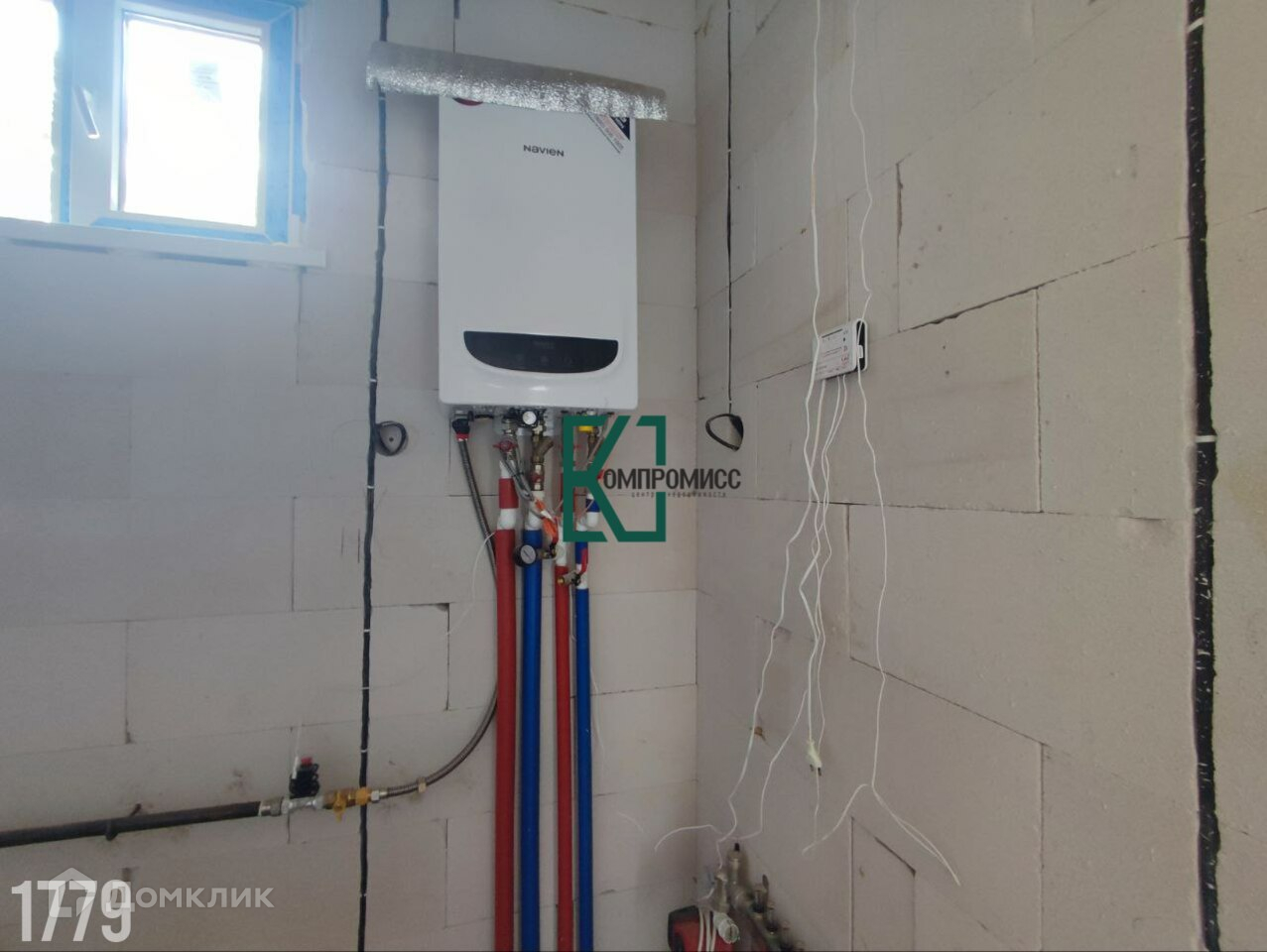 В доме — предчистовая отделка: стяжка, штукатурка, разводка всех коммуникаций, теплый пол, радиаторы, двухконтурный газовый котел.