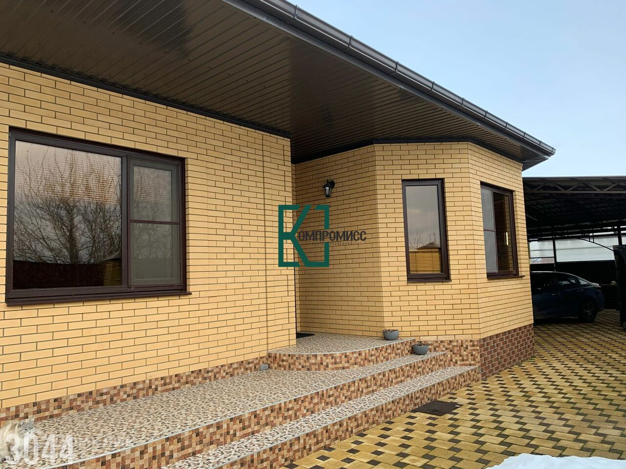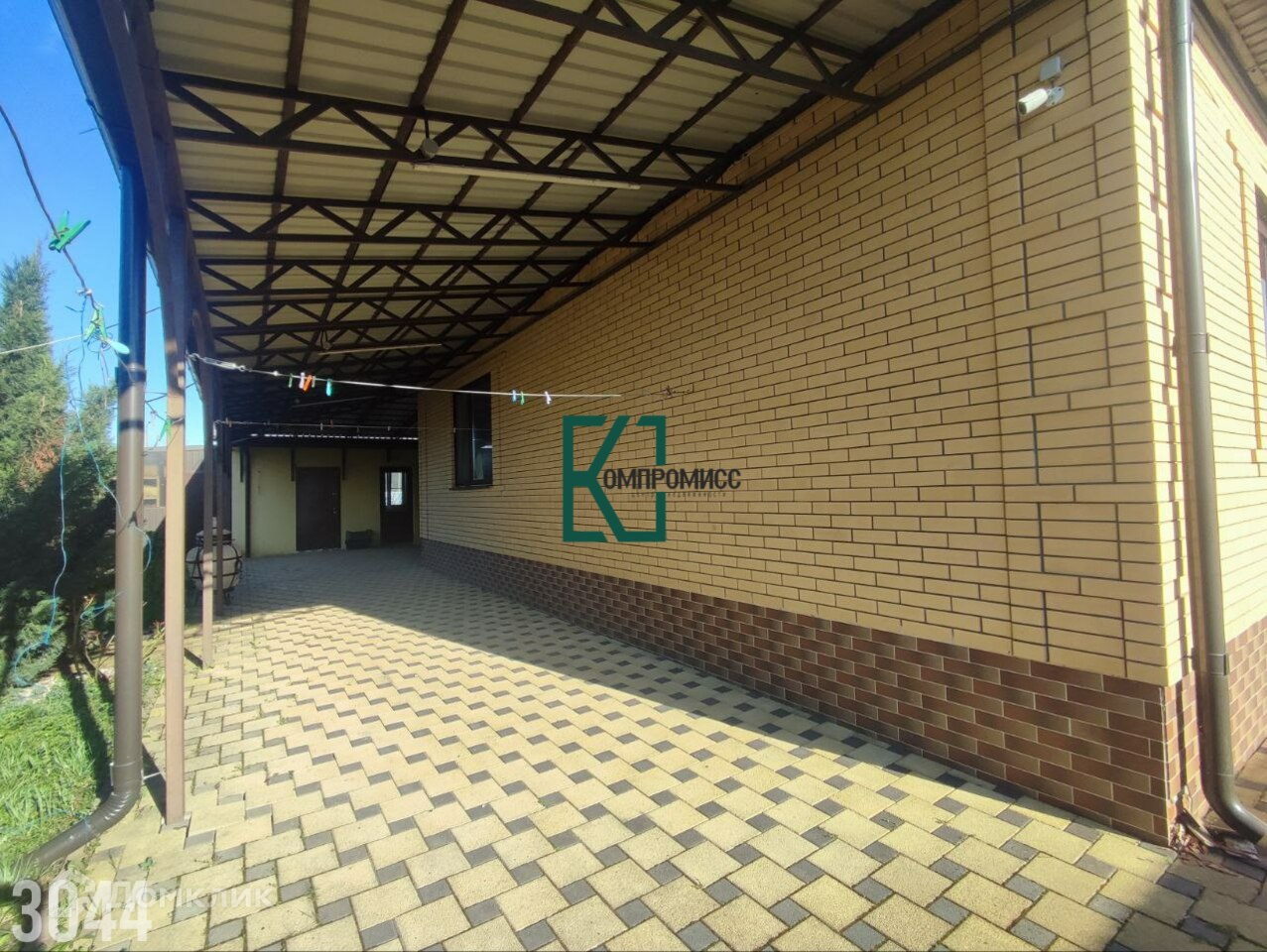Добротный одноэтажный дом из кирпича, с гаражом, завидным садом, беседкой и очень зеленым участком.