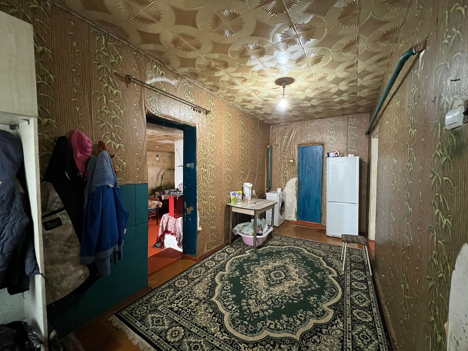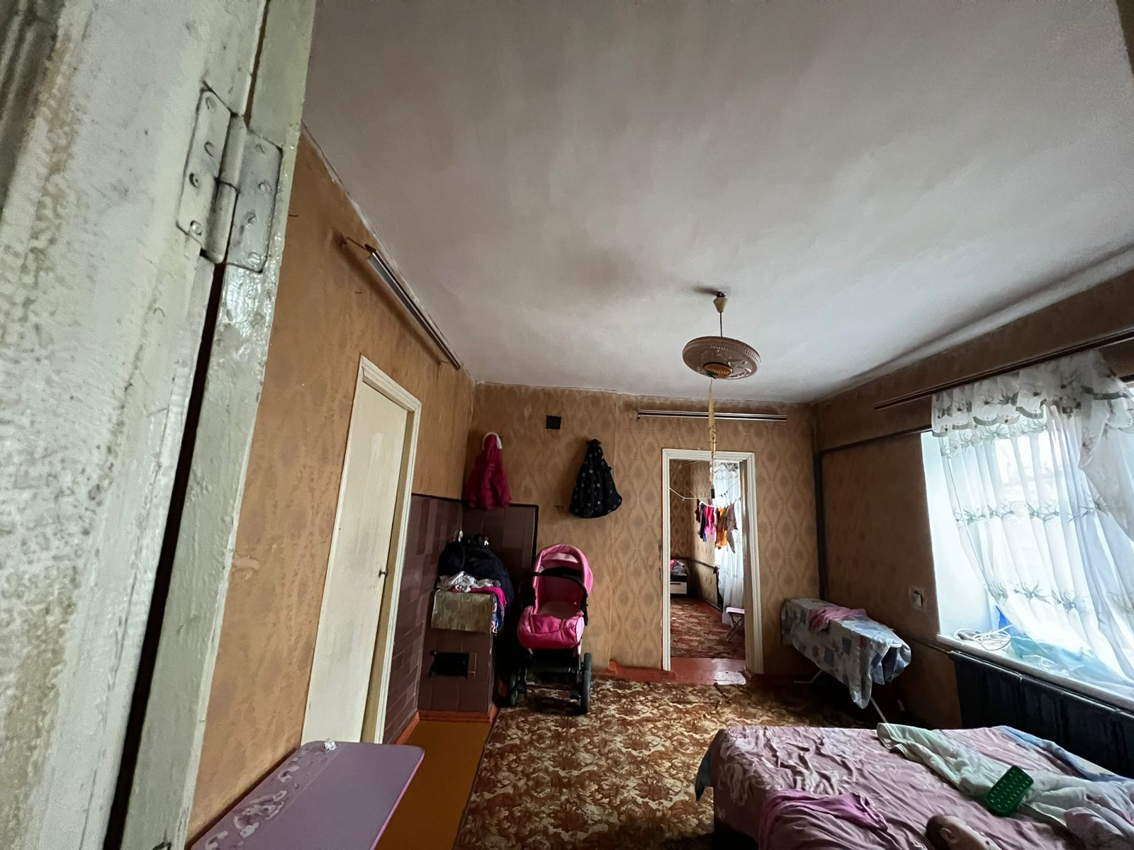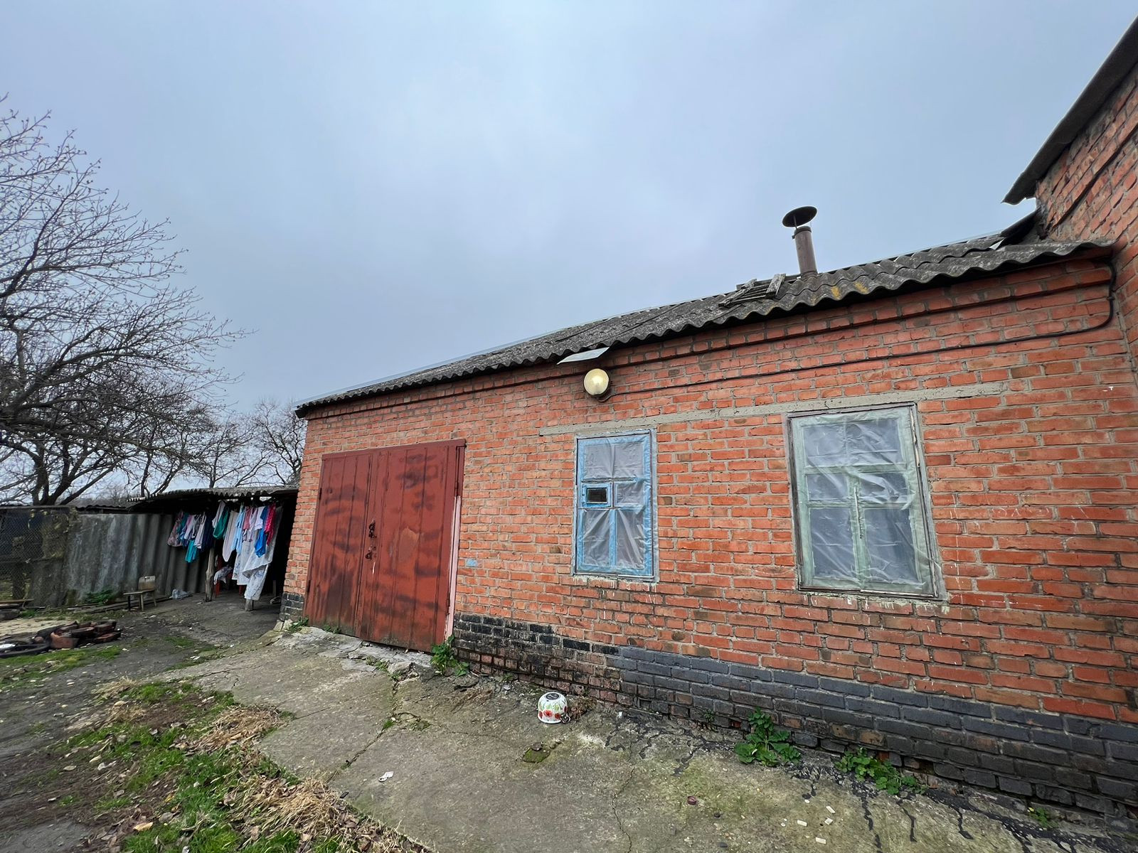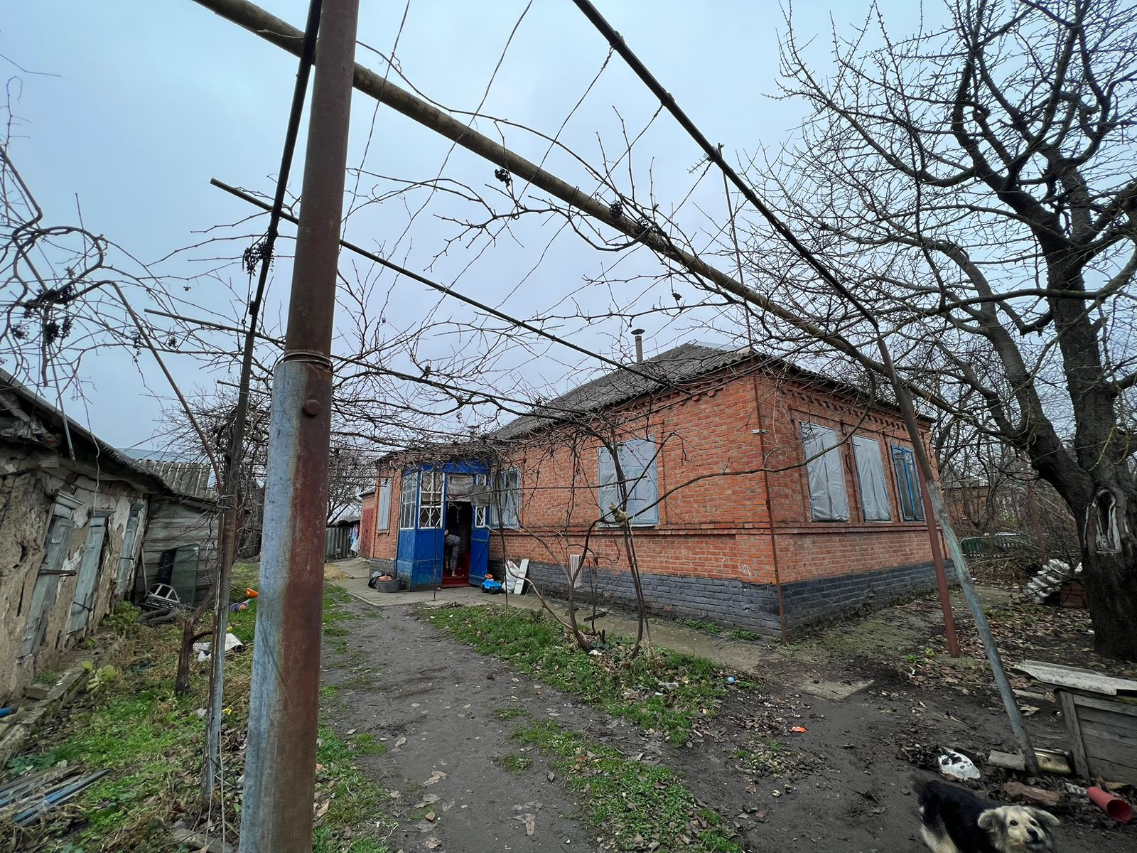 Кирпичное домовладение, кровля - шифер. Состоит из трех комнат смежно-раздельного расположения, кухни, с/у и коридоров. На стенах обои, потолки побелены, пол застелен листами ДВП. На кухне стены оклеены обоями, потолочная плитка, полы дощатые. С/у совмещенный. Установлены счетчики на коммуникации. Отопление - газовый камин (форсунка). Входная дверь - деревянная. Из хоз.построек: кирпичный гараж на одну машину, сарай, птичники, и т.д. Канализация - септик. Земельный участок, с фруктовыми деревьями и кустарниками. Есть виноградник. Огород имеет выход к реке. Металлопрофильный забор, ширина фасада, 24 м.. За двором есть место для стоянки автомобилей. Тихое и уютное место, где можно отдохнуть от городской суеты и пыли.