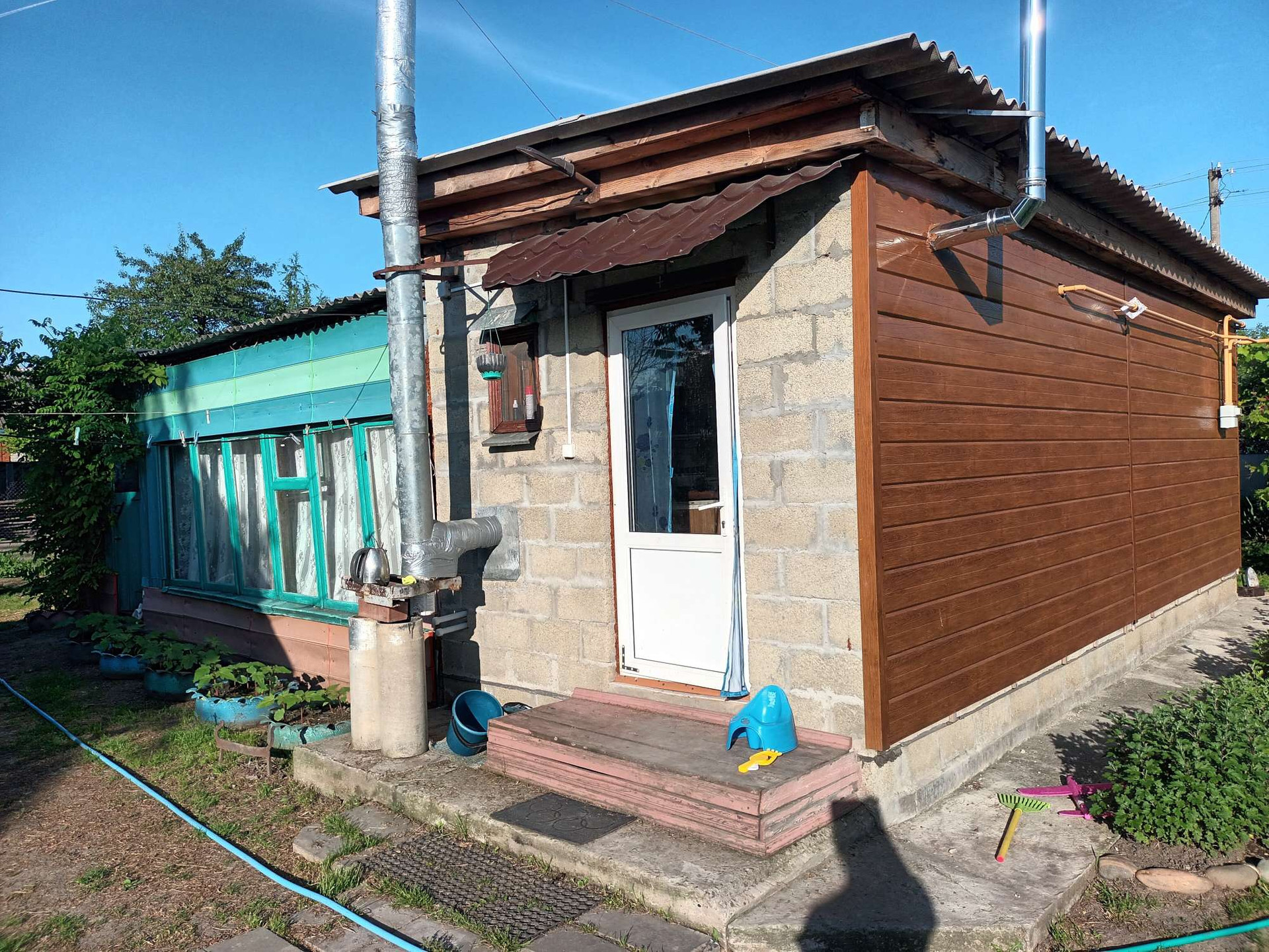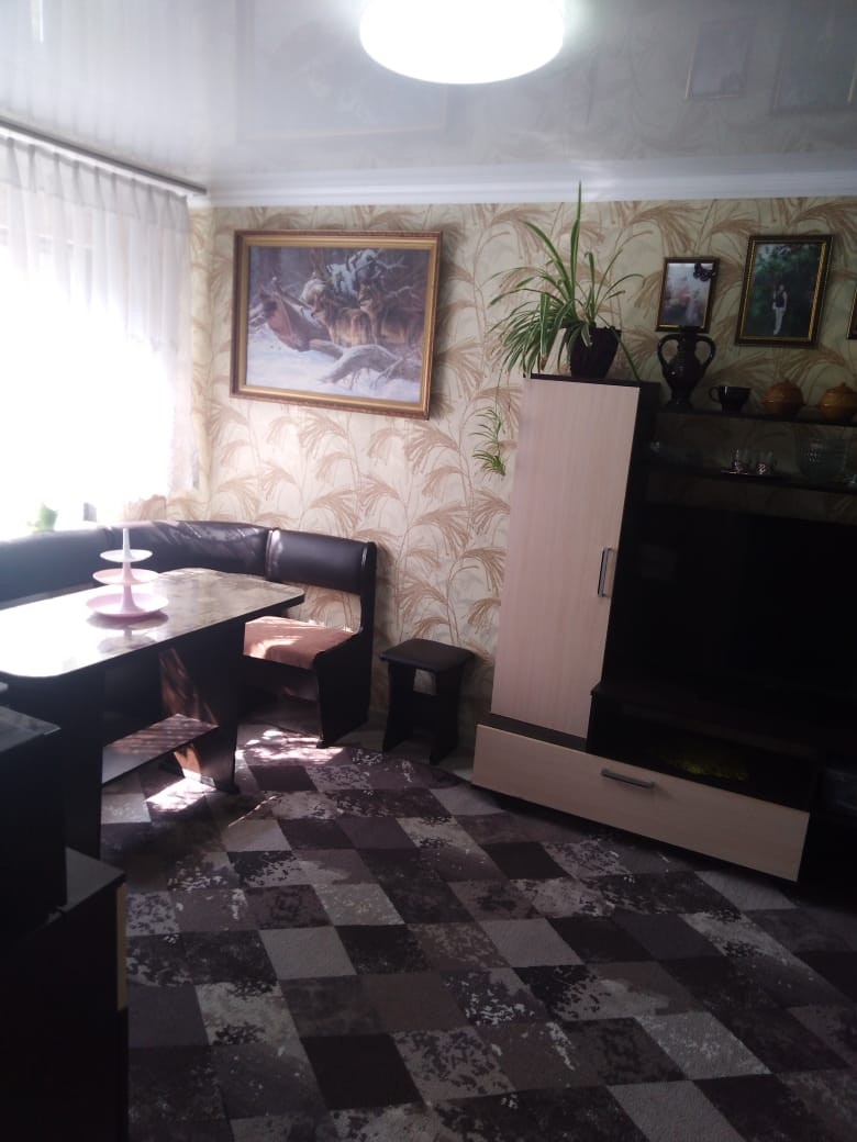 Продаётся дом с пристройкой. На участке дом с газом ( газ проведён в этом году), водой, душевая кабина и туалет. Отдельно на территории имеется жилая кухня с печным отоплением (отапливается котлом на дровах и угле) и пристройкой. И летняя кирпичная кухня. Всего 3 строения на территории. Также имеется большой молодой сад, более 40 деревьев. Малина, ежевика. Железный профильный забор по периметру участка. Дорога пред двором  асфальтирована, ходит школьный автобус.  До магазина и детского сада 5 минут пешком. Реальному покупателю торг.
