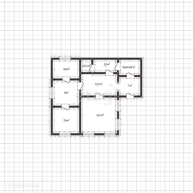 Общая площадь 67.7 м2
