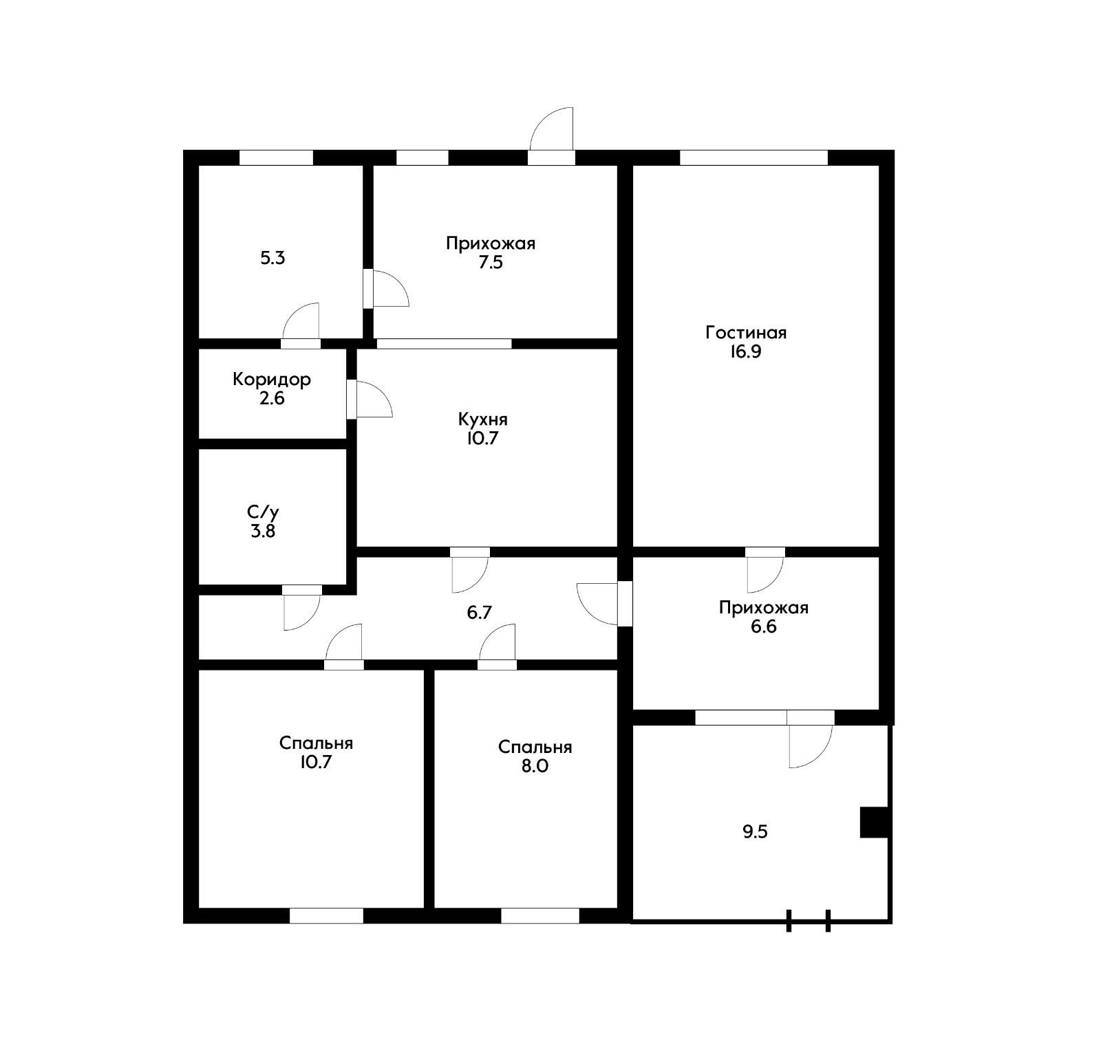 Общая площадь 77.7 м2