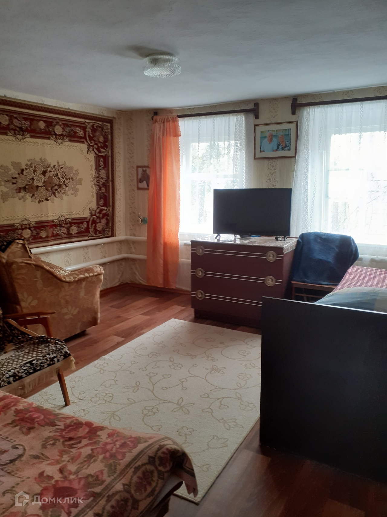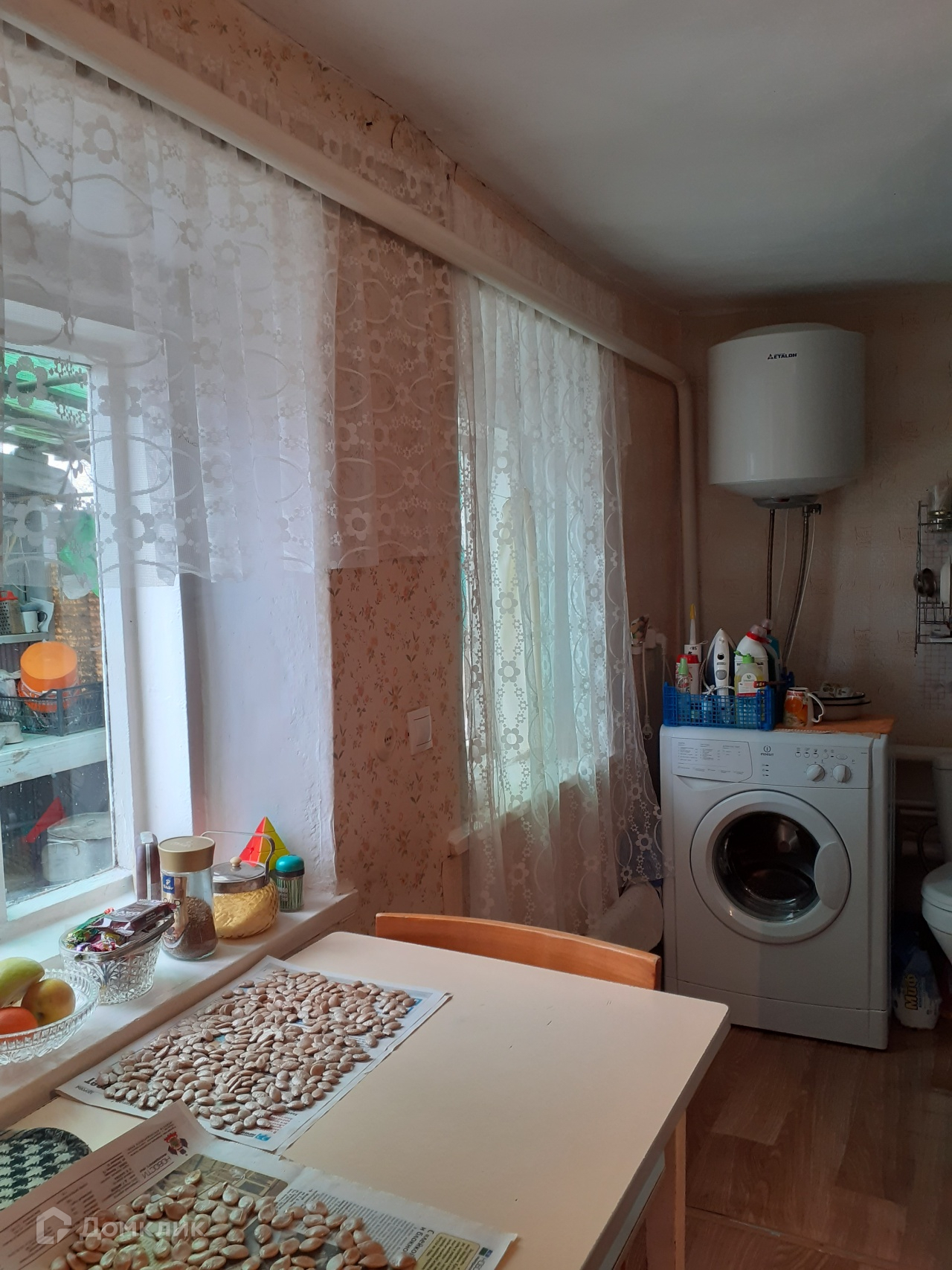 Дом площадью 60 кв.м - 4  комнаты, состояние хорошее, газовое отопление. Спутниковое ТВ, сплит-система. Во дворе еще один дом с газом и удобствами. Два кирпичных гаража, кирпичные постройки, постройки для разведения животных,летний душ и туалет, скважина для полива, сад.
