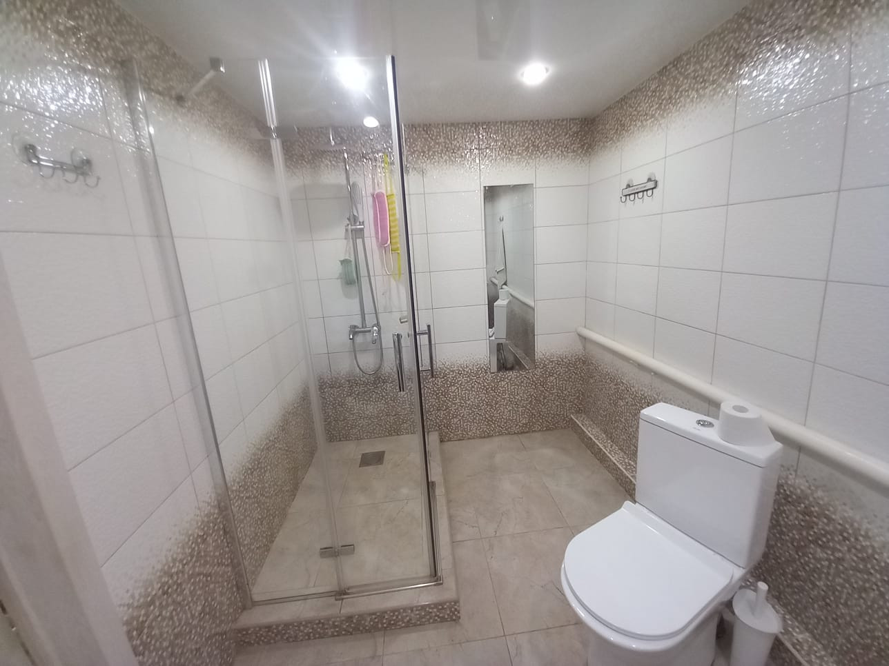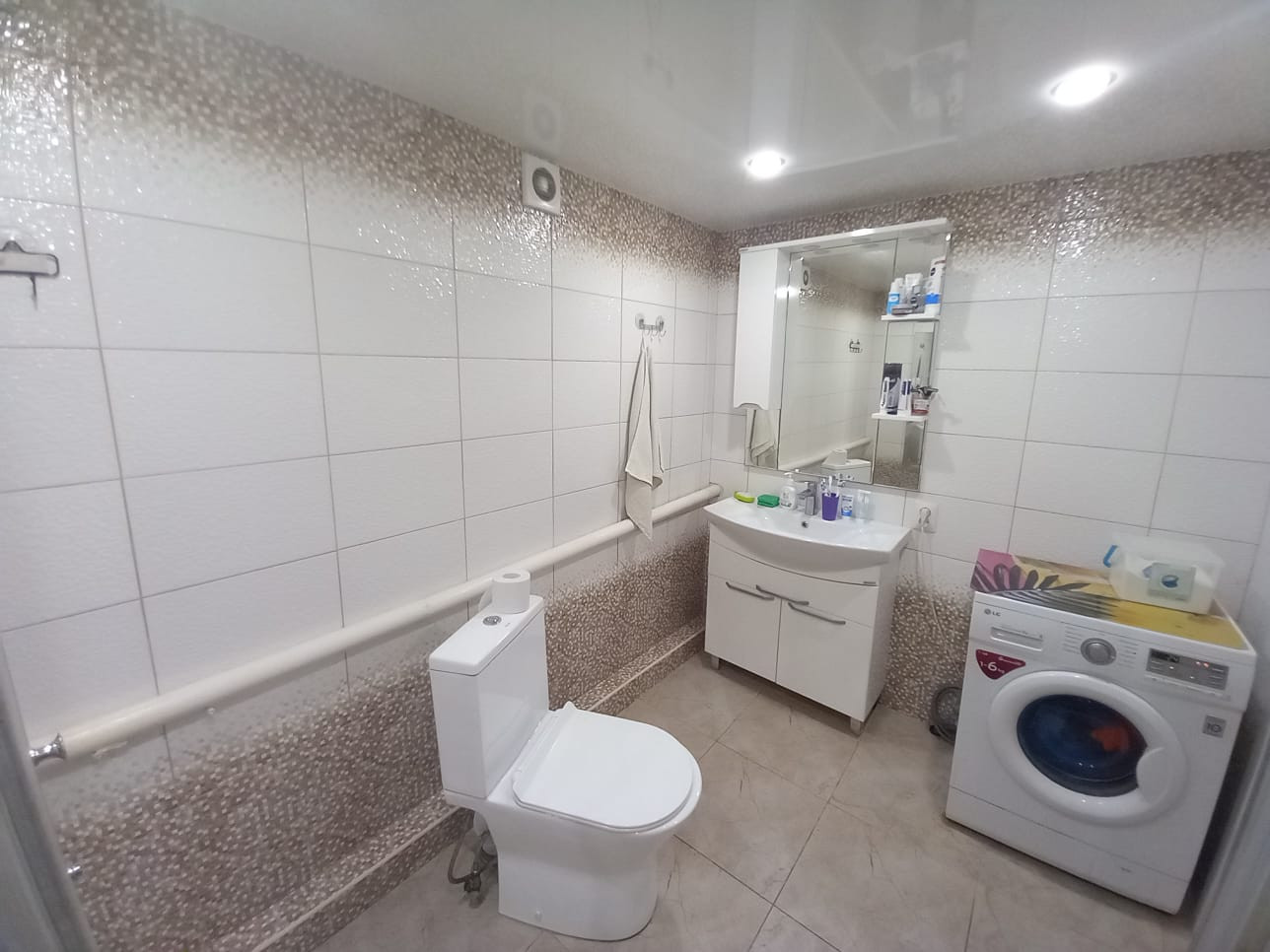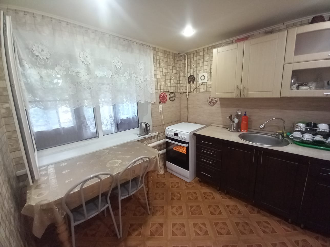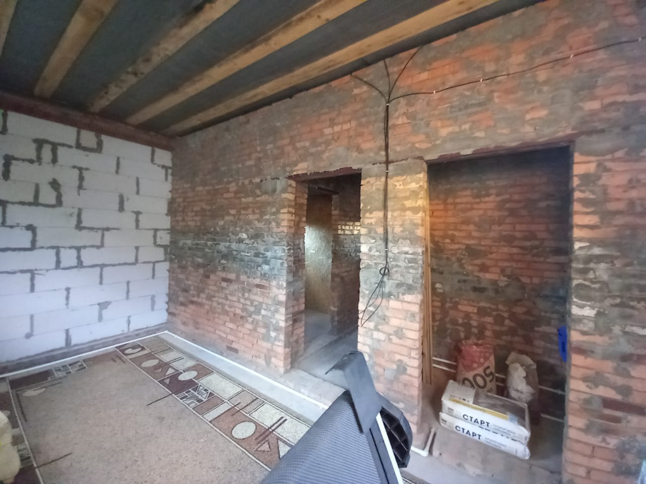 Материал стен — кирпич. Высокие потолки. Окна металлопластиковые. Состояние отделки — «заходи и живи». Потолки натяжные. Лестница бетонная.