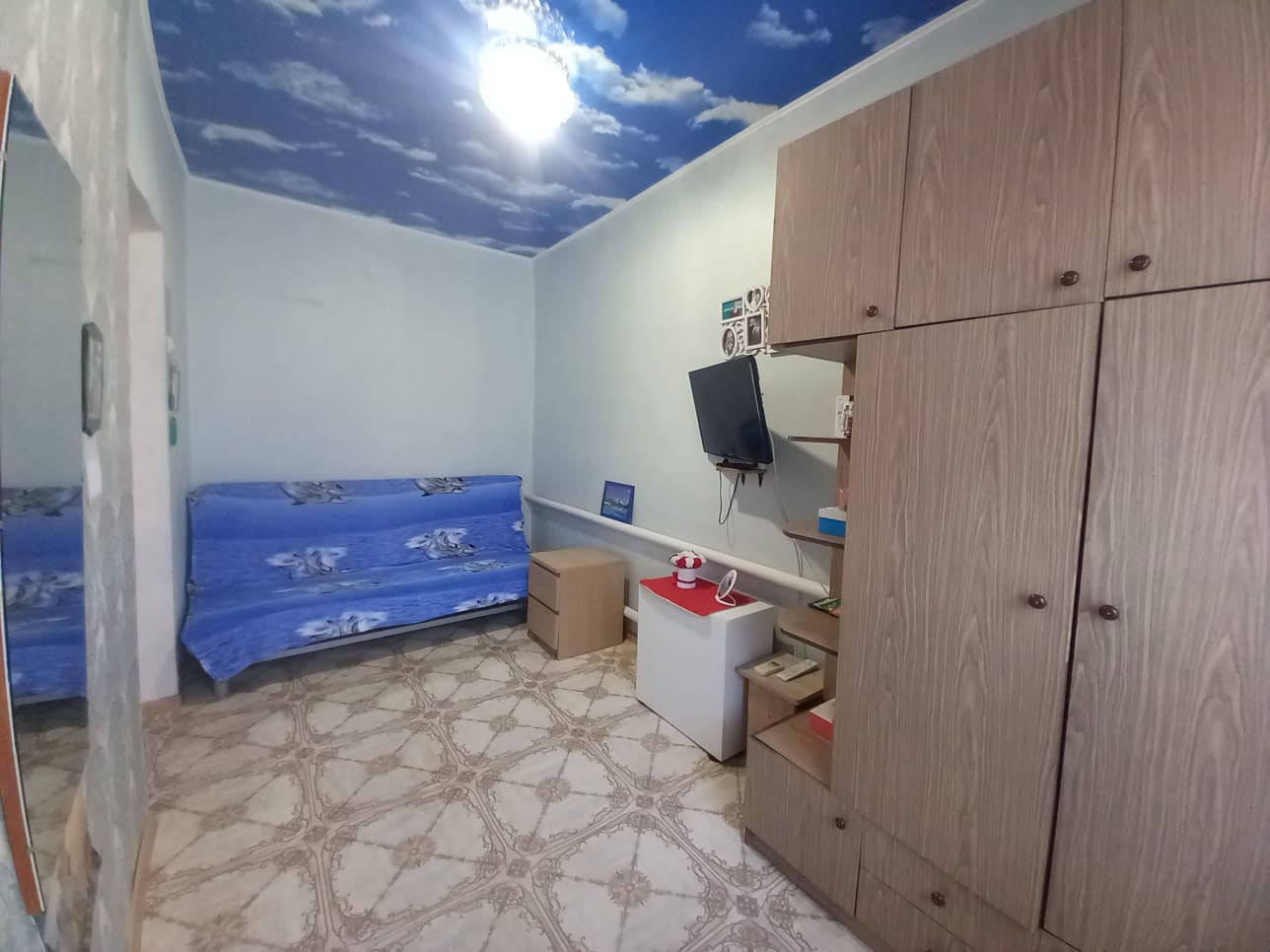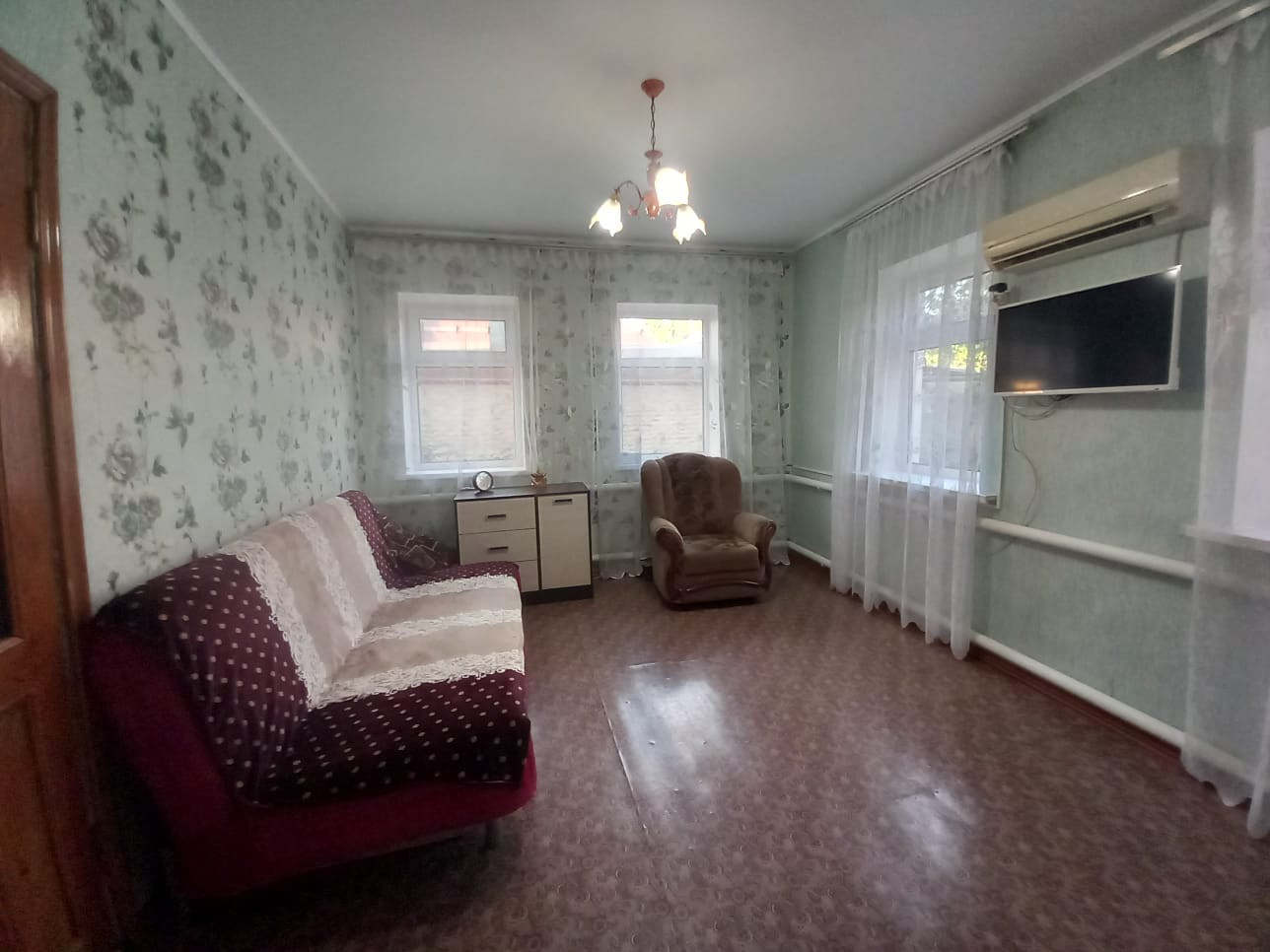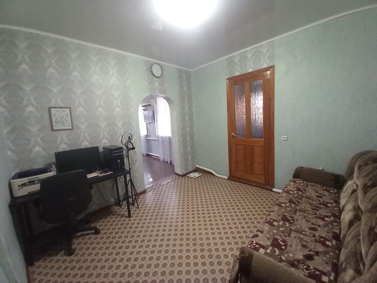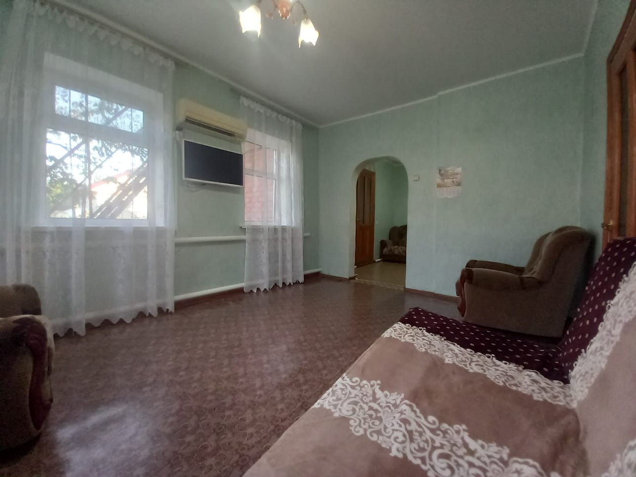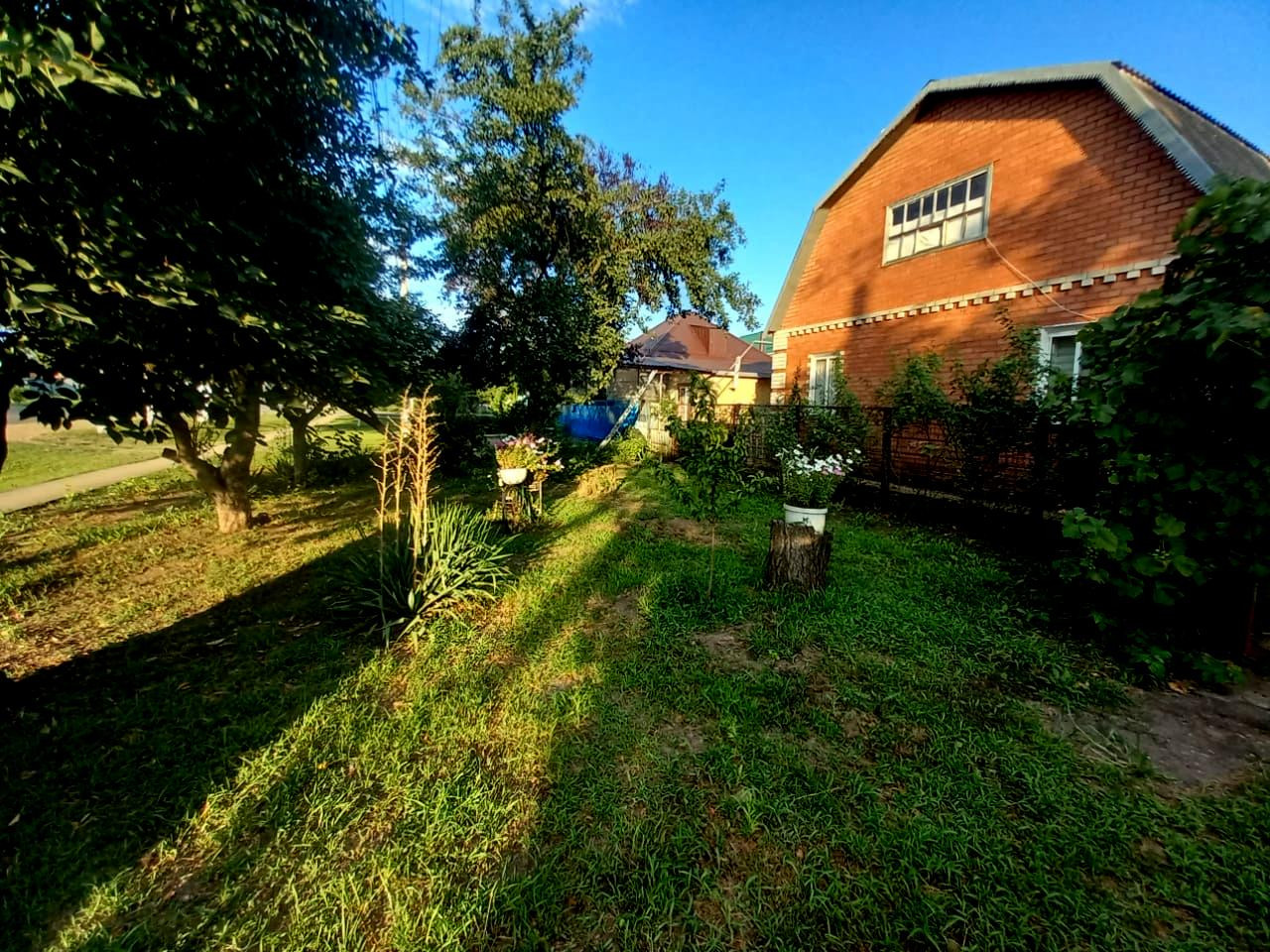 Двор асфальтирован. К дому пристроен металлический каркас беседки из виноградных лоз. Есть возможность сделать большой навес от прямых солнечных лучей. Во дворе имеется вывод воды для полива, мытья автомобиля и других бытовых нужд.