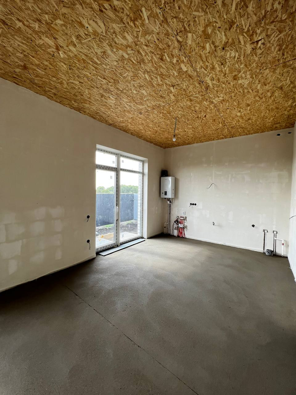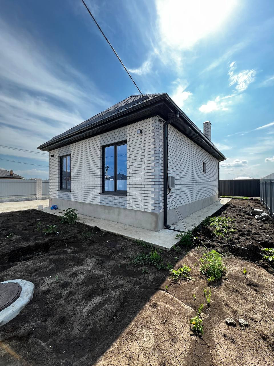 В доме качественная предчистовая отделка, разводка электрики, сантехники теплые полы, потолки подшиты, хорошая входная дверь, окна с напылением от УФ