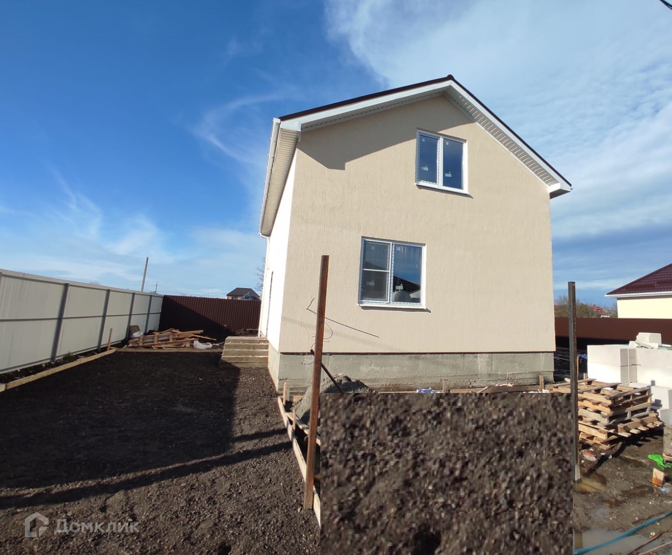 Дом сдается в пред чистовой отделке: штукатурка, шпаклевка, сделана разводка электрики, организована система отопления, установлен газовый котел и радиаторы, теплый пол в холодных зонах, металлопластиковые окна, входная дверь металлическая.