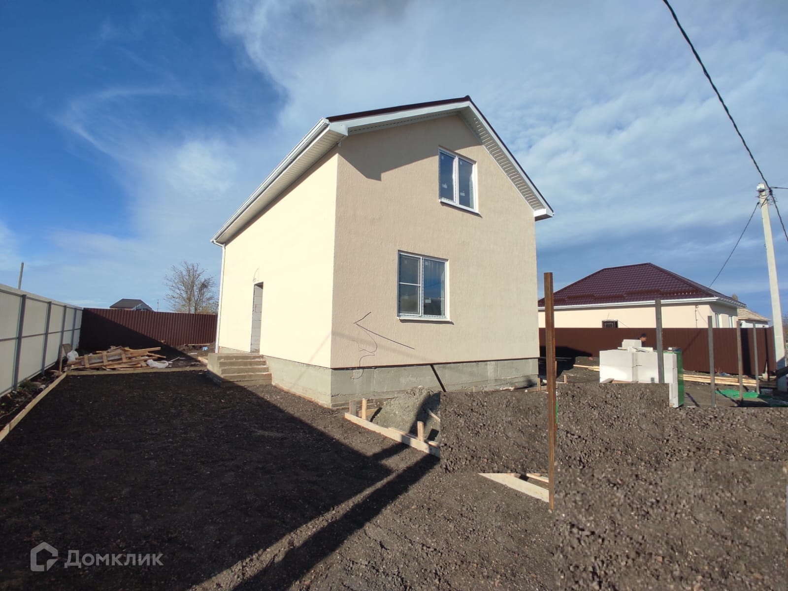 2 этаж: 3 комнаты, холл. Дом построен на ленточном фундаменте, стены дома газоблок, фасад декоративная штукатурка. Кровля премиум класса - выполнена из качественной металлочерепицы.