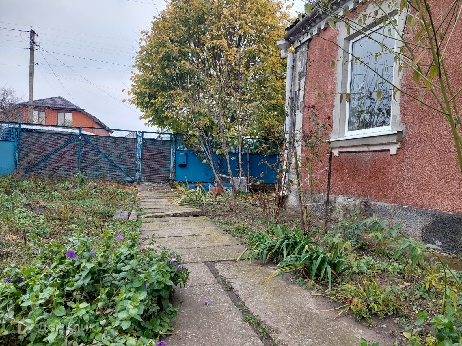 Участок огорожен, фасадный забор металлический.