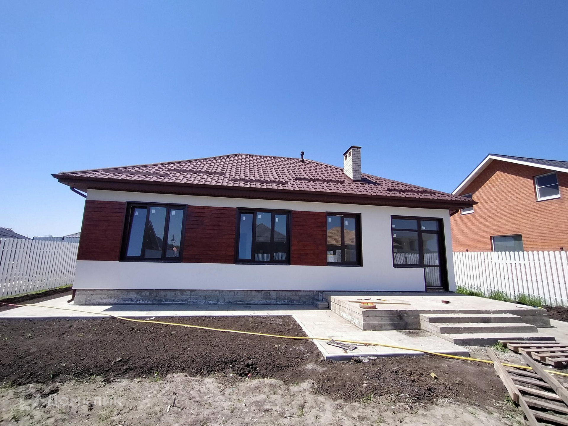 Продается одноэтажный дом 130 кв.м. с террасой на участке 7,6 соток в Коттеджном поселке «Новотиторовка» закрытого типа. До Краснодара 3 км.(10 минут). Отличное место внегородской суеты с закрытой территорией поселка. Дом построен исключительно по проекту с соблюдением все норм строительства. В доме по плану 3 комнаты и большая кухня гостиная 29 кв.м. с большим витражным окном в пол. Так же из кухня выход на террасу 15 кв.м. Отличительная черта данного дома – это большие окна в следствии чего дом очень светлый даже в пасмурный день. В доме выполнена предчистовая отделка, стяжка, установлены радиаторы в комнатах, вся разводка коммуникаций. Теплый пол проведен в кухне гостиной, коридоре, санузле. Имеются все фото скрытых работ по теплому полу, и вы увидите, как он сделан (это очень важный момент). Окна с фасадной части цветом «темный орех» что отлично гармонирует со светлым фасадом и вставками из натурального дерева. Фасад дома по технологии «Мокрый фасад» -это стена из газобетонных блоков (не керамзитобетон и шлакаблок), минеральный утеплитель для фасадов (не пеномплекс), армированная стяжка, покрытие короеда мелкой фракции и фасадная краска в два слоя. Дом получается дышащий, а не «газовая камера». Черепица дома матовая хорошей толщины. Установлена премиальная входная дверь. По периметру участка установлен забор из белого штакетника по высоте в два метра. Скважина на участке 64 метра, что говорит о качестве воды в вашем доме. Отмостка выполнена из брусчатки с фактурой. С фасадной части дома место под два авто. Крыльцо дома с колонной выделено отделкой плитки из керамогранита. Вокруг дома нет никаких старых построек. Есть архиф всех скрытых работ. Станица Новотиторовская это самая ближайшая станица к Краснодару, есть храмы, школы, садики, спортивные комплексы. В станице проходит река Понура, и есть отличные места для рыбалки в 10-15 минутах от дома.