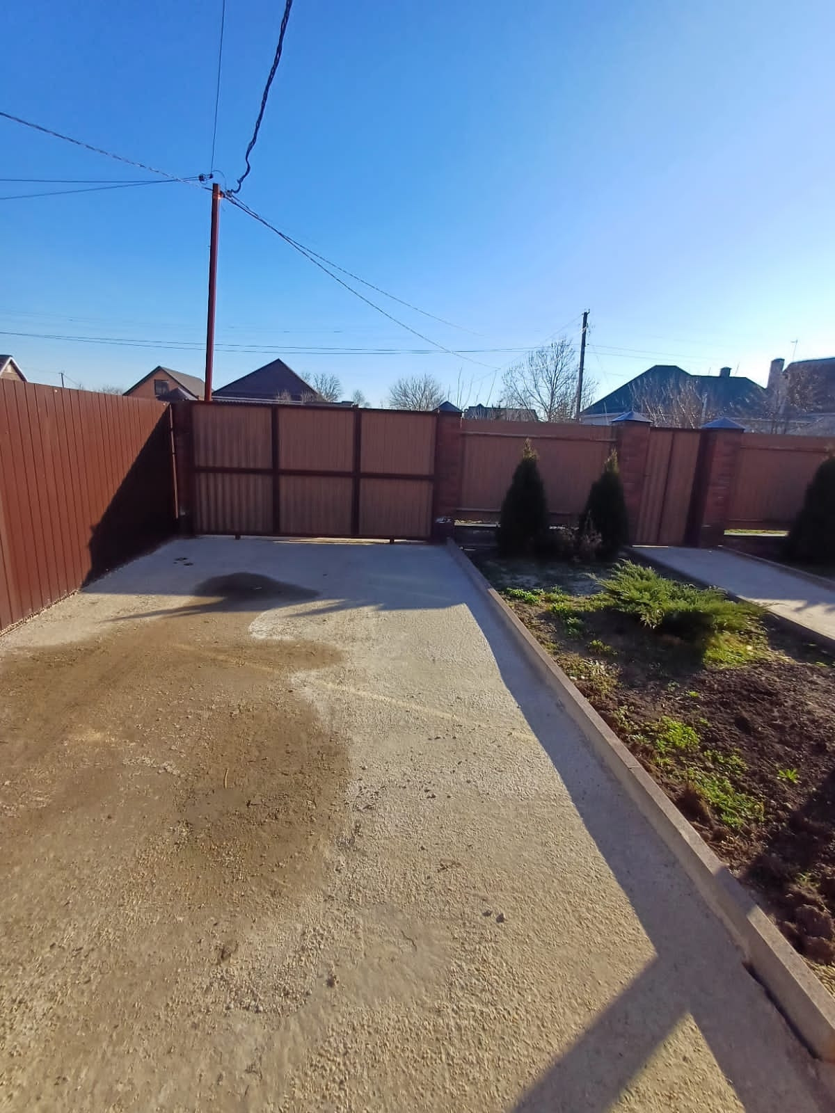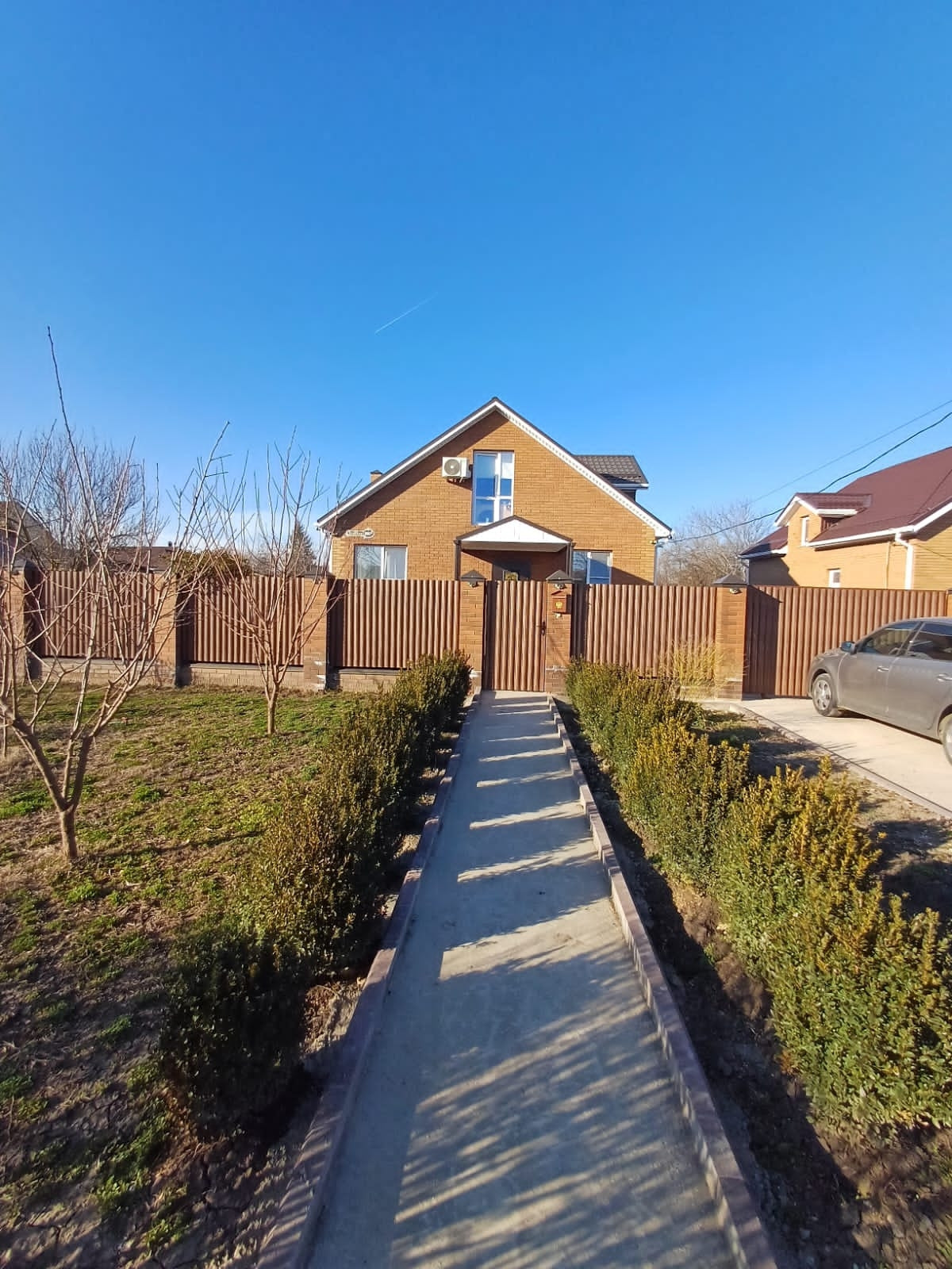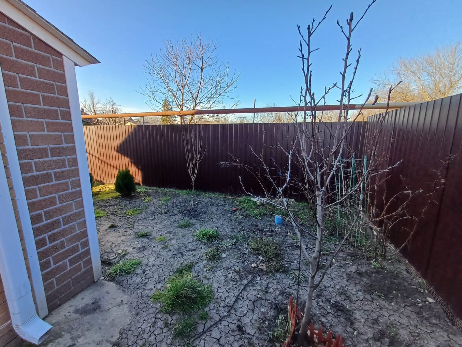 Участок 3 сотки, залита площадка под бассейн и под мангальную зону. Деревья - персик, яблоня, груша, слива белая, из кустарников - малина, жимолость, смородина. Также посажены хвойники - туя Смаракт, шаровидные туи, стелящаяся туя, золотистые туи