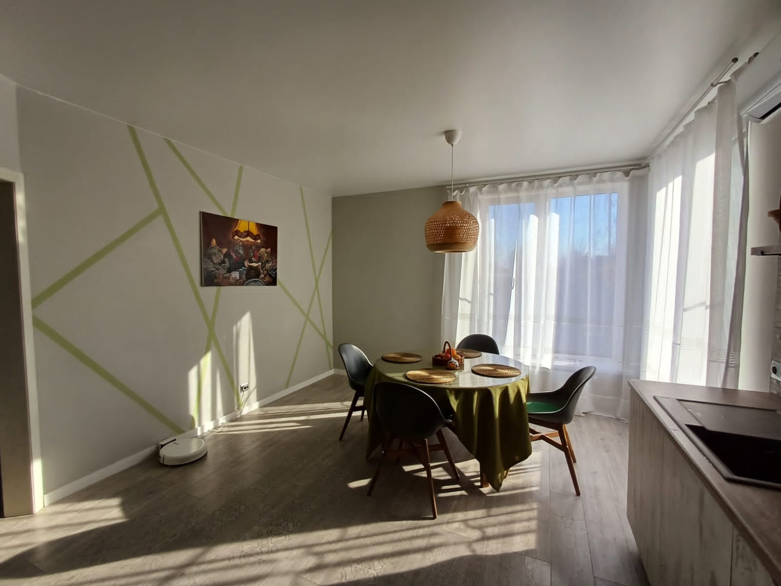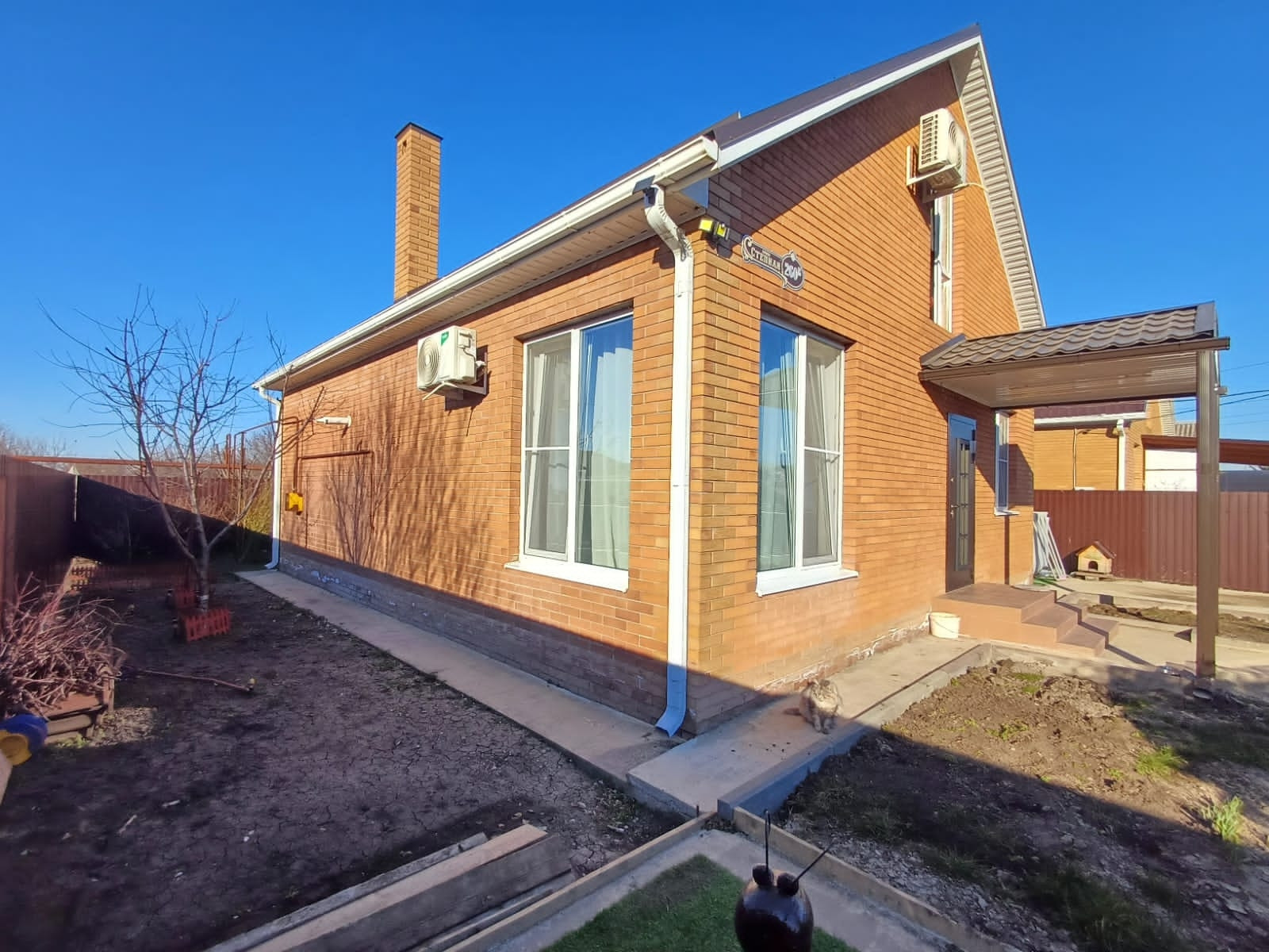 К дому прилагается уличный кот - он очень ласковый с хозяевами, но гроза всех уличных котов и собак.
