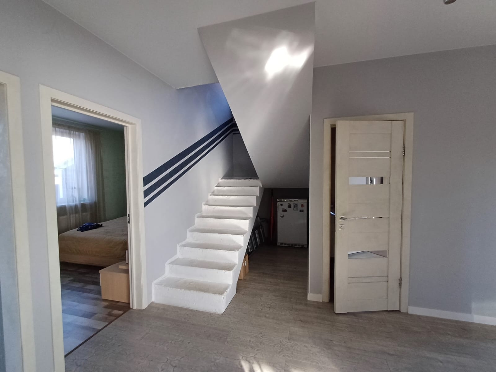 Перекрытие между этажами - монолитная плита. Лестница монолит-бетон.
