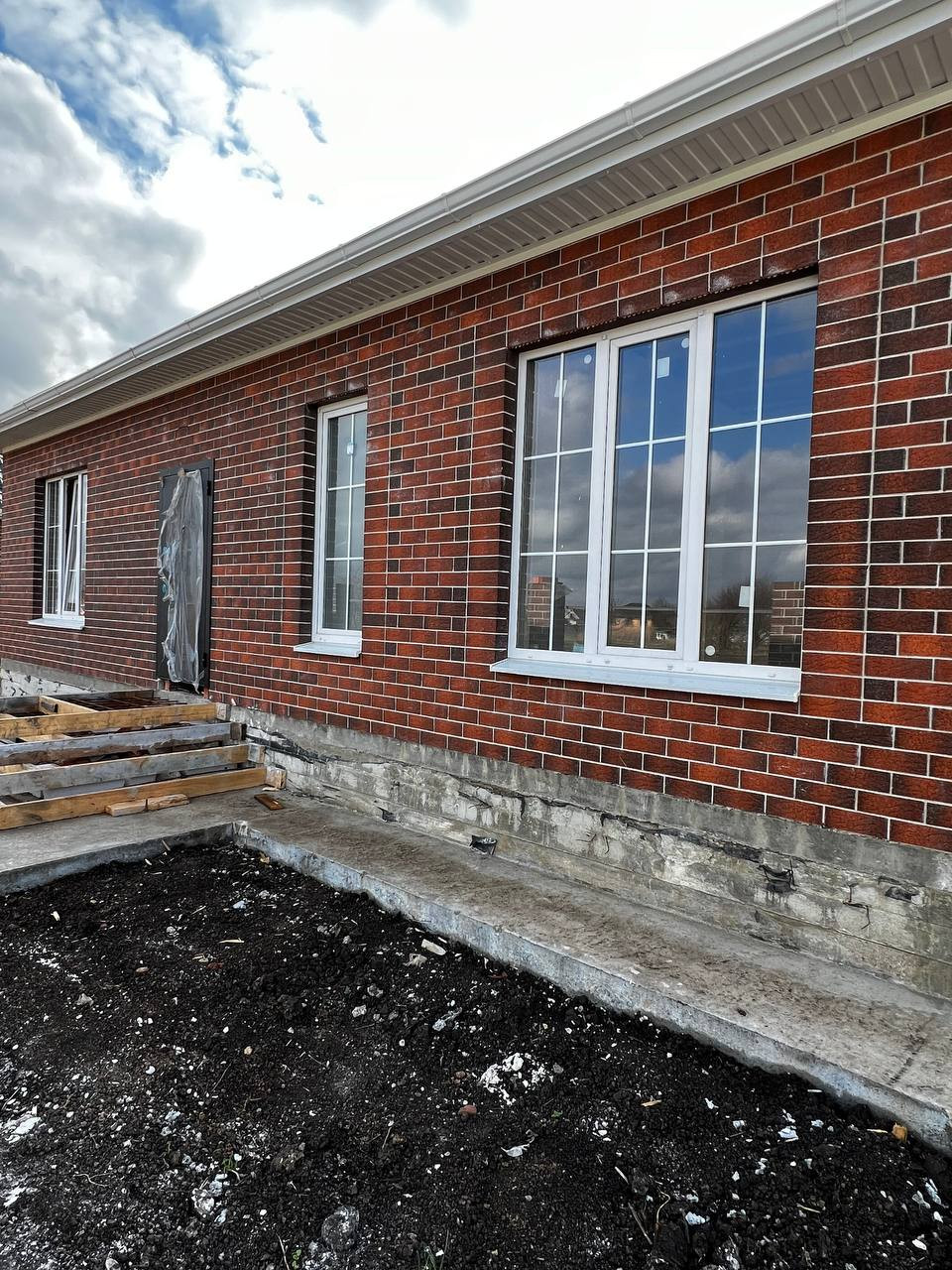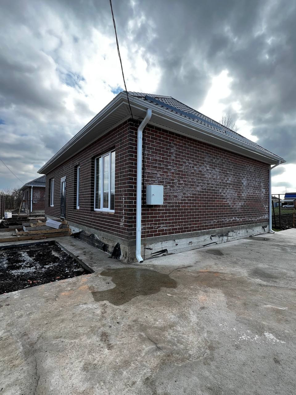 Благоустроенный двор - отмостка вокруг дома, забетонировано крыльцо, площадка под авто, дорожка к дому. По периметру установлен забор, по фасаду - кирпичные столбы. Откатные ворота, калитка с выведенным электричеством под установку автоматики для ворот.