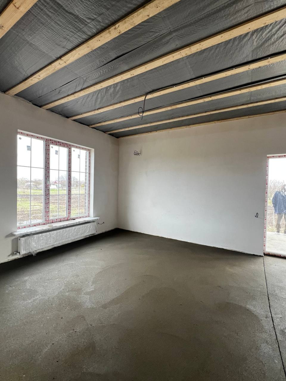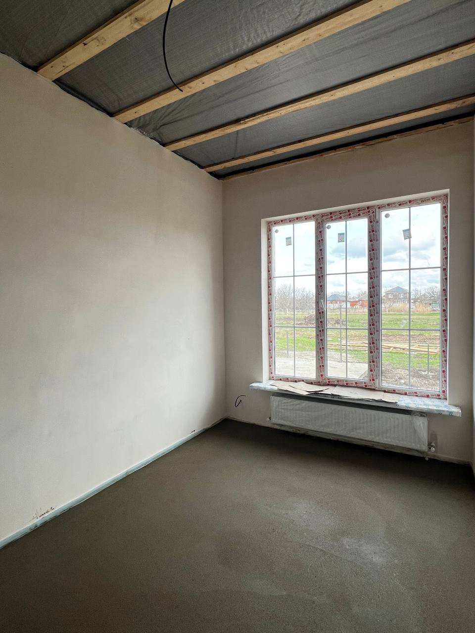 В доме идеальная предчистовая отделка - стены подготовлены под обои или покраску, на полу идеально ровная стяжка для укладки плитки, ламината или кварцвинила. Выполнена разводка электрики, установлены радиаторы отопления.