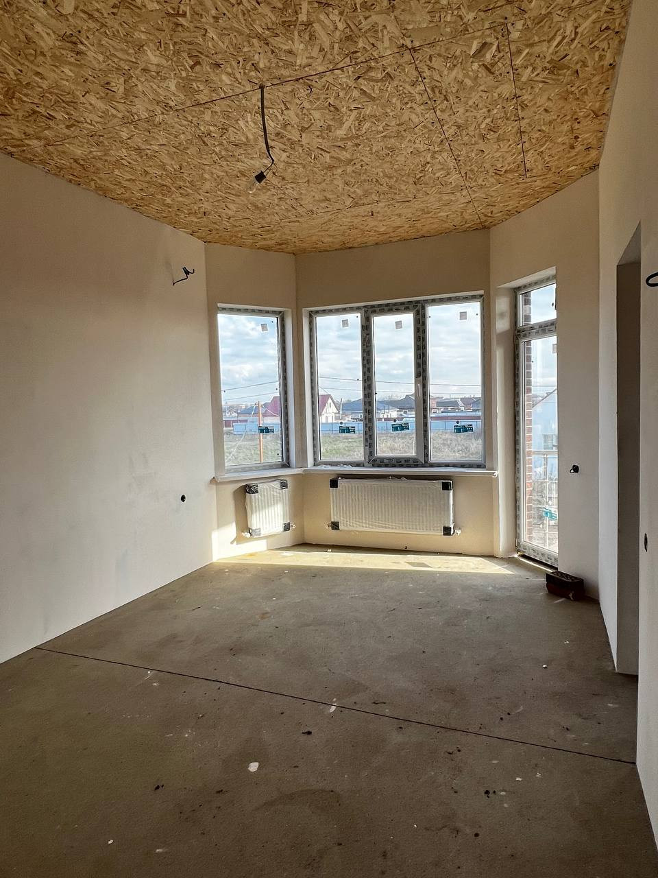 В доме идеальная предчистовая отделка - стены подготовлены под обои или покраску, на полу идеально ровная стяжка для укладки плитки, ламината или кварцвинила. Выполнена разводка электрики, установлены радиаторы отопления.