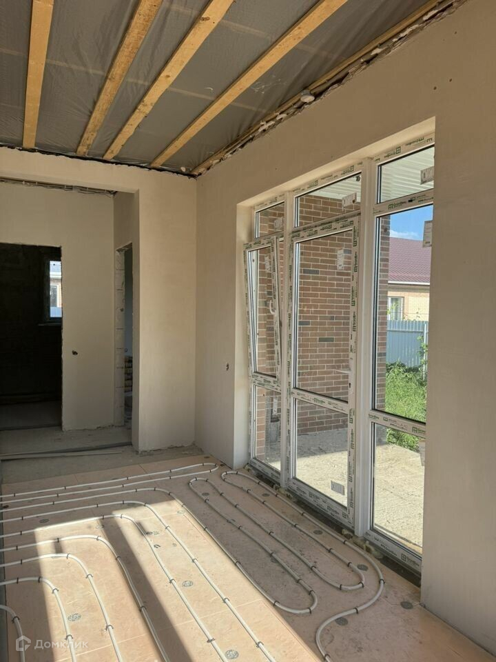 Дом 87м2 по площади застройки, на земельном участке 4 сотки ИЖС. Расположение - КП Новотиторовка. Размер участка: фасад 22м. глубина 19м. ровный, правильной формы. Планировка дома: 2 жилые комнаты, кухня-гостиная с выходом на террасу, котельная, сан. узел. Строительство велось по проектной документации, фото-отчет этапов сохранен. Фундамент: ЖБ сваи+ростверк / ЖБ плита по ростверку. Стены: газоблок D500 + кирпич керамический 1НФ Крыша: металочерепица Окна: пластик + энергосберегающие стеклопакеты. Внутри дома выполнена полная разводка электричества, собран щит. Отделка: предчистовая. Отопление: выполнена полная разводка, установлены радиаторы отопления, тёплый пол в зоне кухни-гостиной, установлен электро-котёл Придомовая территория: забор из профлиста/парковка и отмостка бетон. Коммуникации: электричество - к дому подведено 15кВт, септик - ЖБ кольца, вода - индивидуальная скважина 69м. глубина, ГАЗ проходит по меже - подключение возможно. Достойное расположение дома, вблизи всей инфраструктуры. Дополнительные вопросы по телефону.