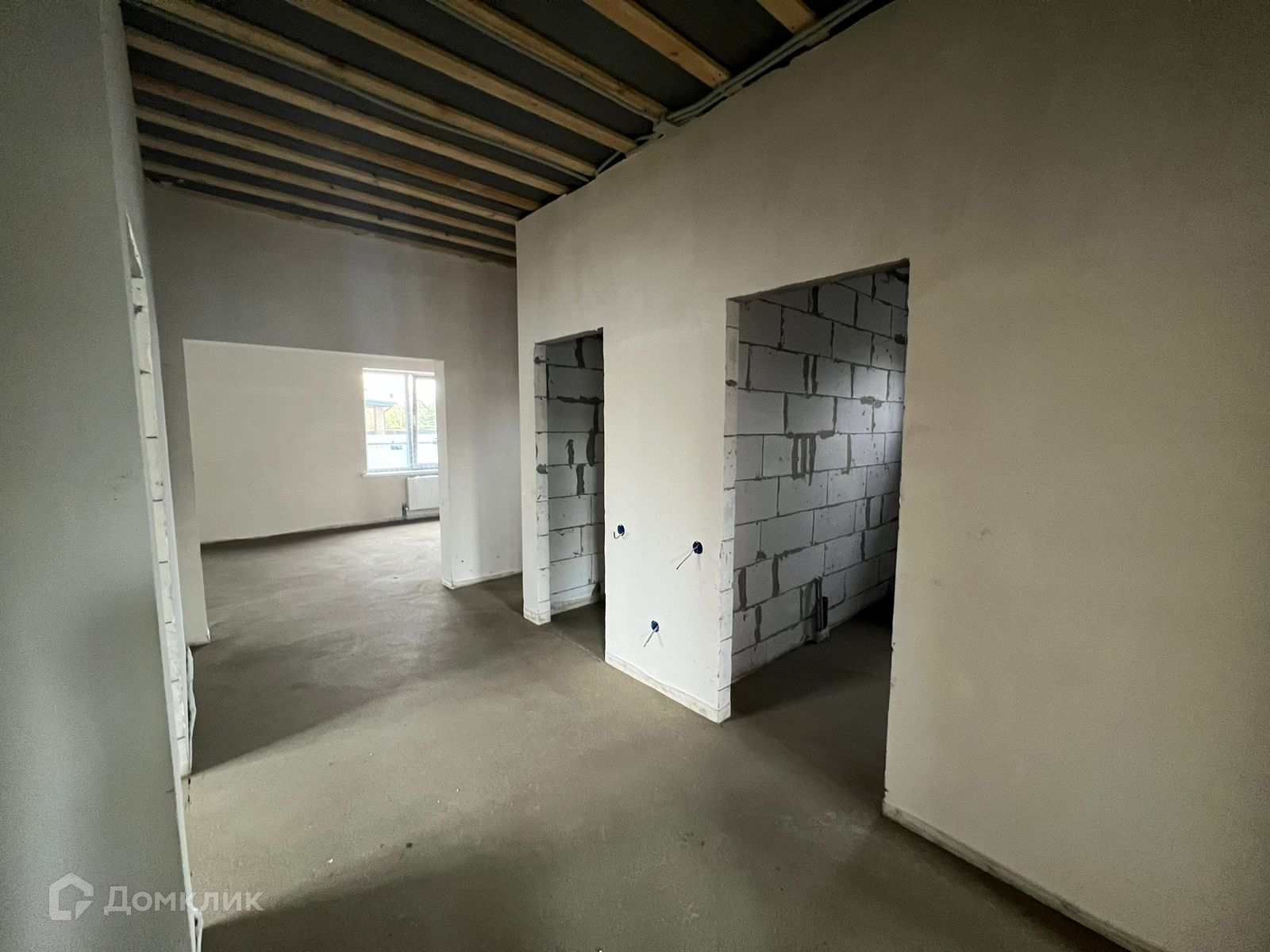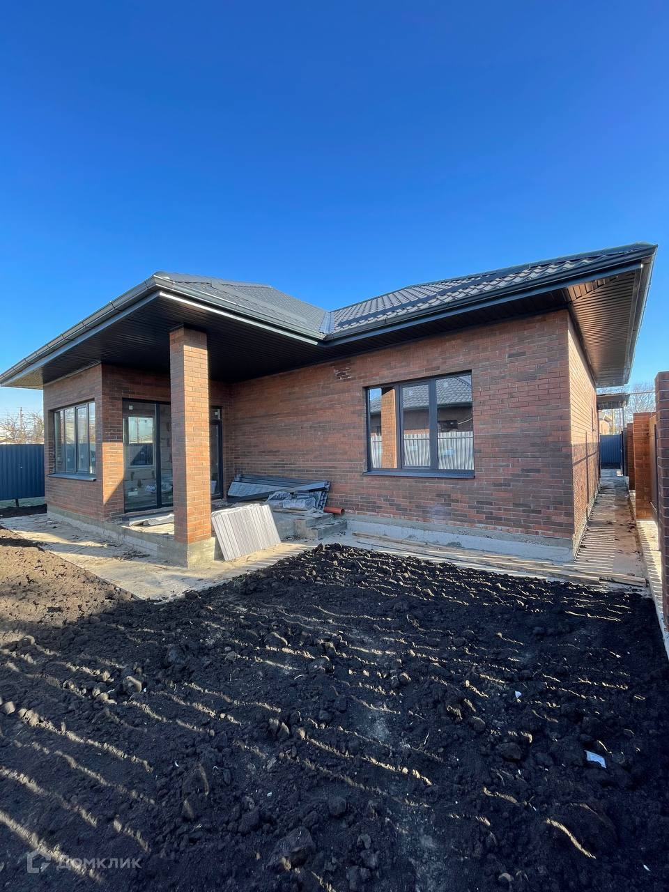 Дом общей площадью 100 м2, 2023 года постройки. Материал стен газоблок облицован керамическим кирпичом. Материал кровли – металлочерепица. Окна из металлопластика. Состояние отделки — предчистовая. Теплый пол разведен во всех помещениях, кроме жилых комнат.