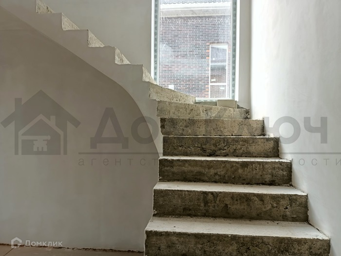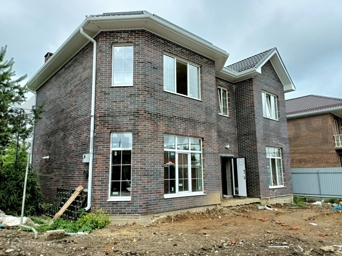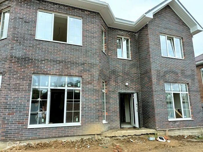 Площадь дома 190 кв.м., на первом этаже: кухня, гостиная, спальня, прихожая, санузел, на втором этаже: 4 спальни, холл, гардеробная, санузел. В доме предчистовая отделка. Лестница и перекрытия между этажами монолит.