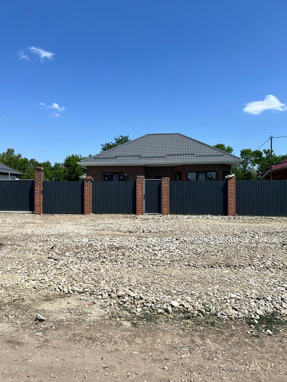 ️Весь периметр огорожен Забором- фасадная часть дополнена красивыми кирпичными колоннами и профиль, остальной из профнастила, ворота откатные
