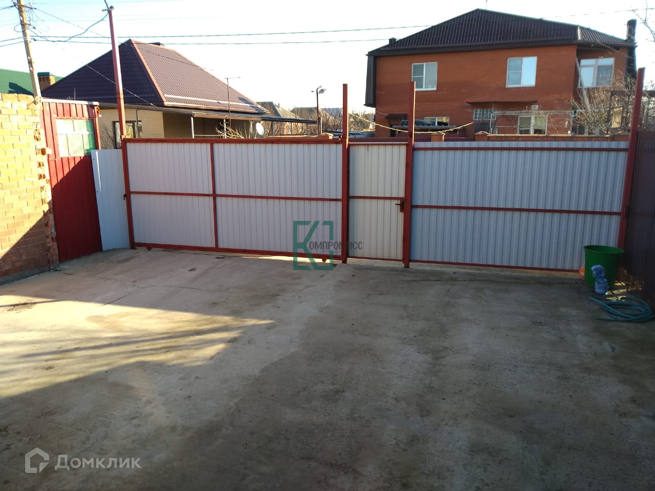 Участок огорожен забором, двор забетонирован, есть место на несколько авто.
