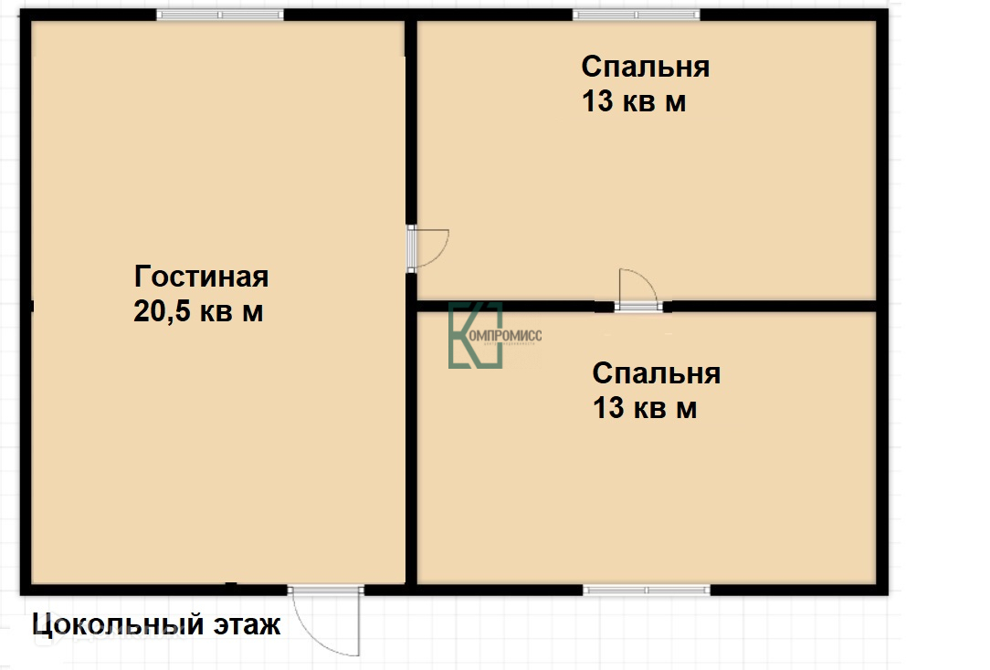На первом этаже кухня - гостиная, спальня, с/у и прихожая. В цокольном этаже: две спальных комнаты, и гостиная.