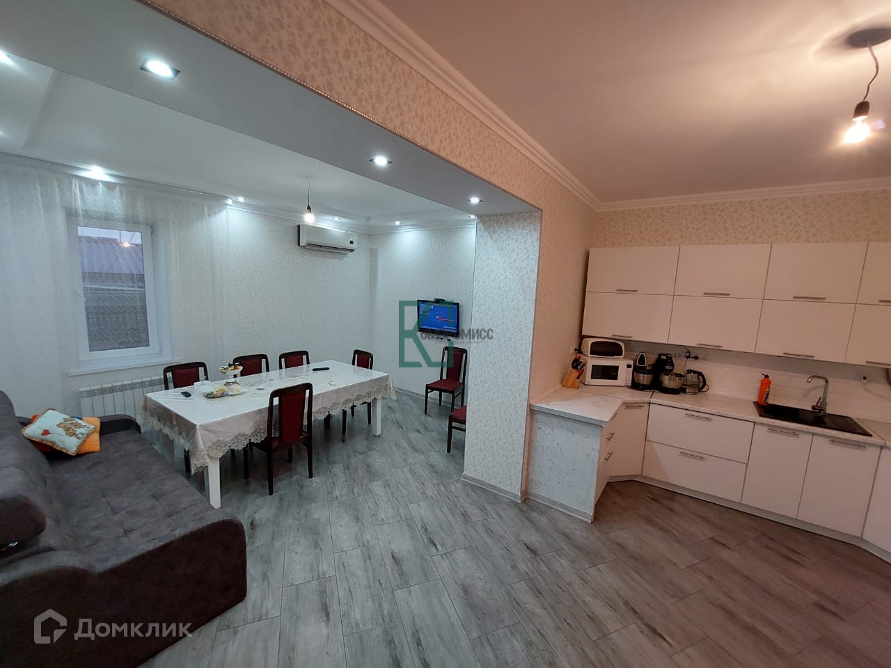 При продаже остается кухонный гарнитур с техникой, шкаф, сплит-система.