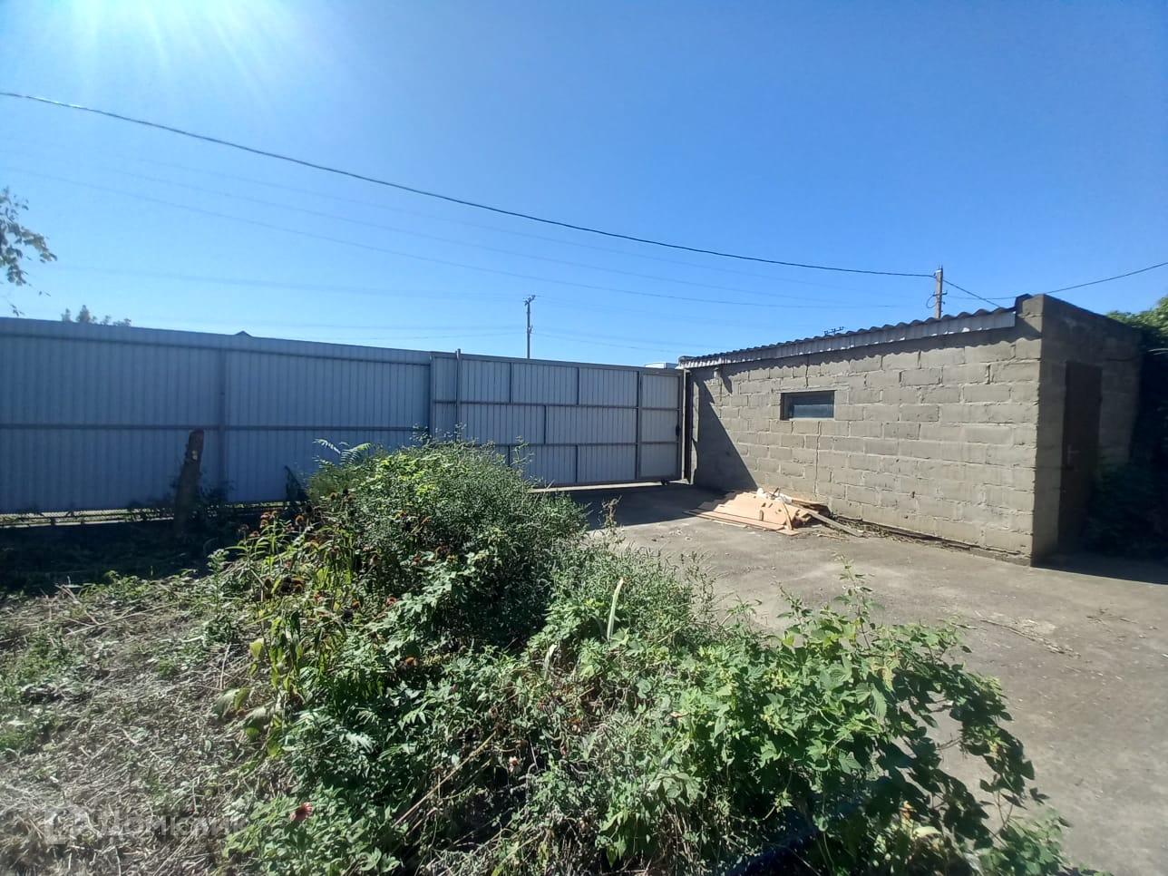 Участок огорожены забором. Ворота из металлопрофиля, откатные.