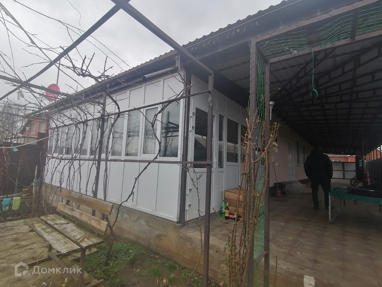 Дом расположен на земельном участке 5,5 соток, на участке имеется большой капитальный металлический навес, защищающий от непогоды. К дому примыкает летняя кухня, с заведенными коммуникациями. Из летней кухни открывается отличный вид в сад.