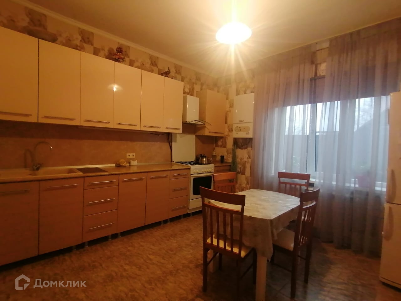 Материал стен дома – газоблок, сверху оштукатурен короедом. Высокие потолки. Крыша- металлопрофиль. Установлен газовый отопительный котёл, газовая колонка для нагрева воды. Окна в доме – метало-пластиковые. Все коммуникации центральные (свет, газ, вода), канализация – септик.
