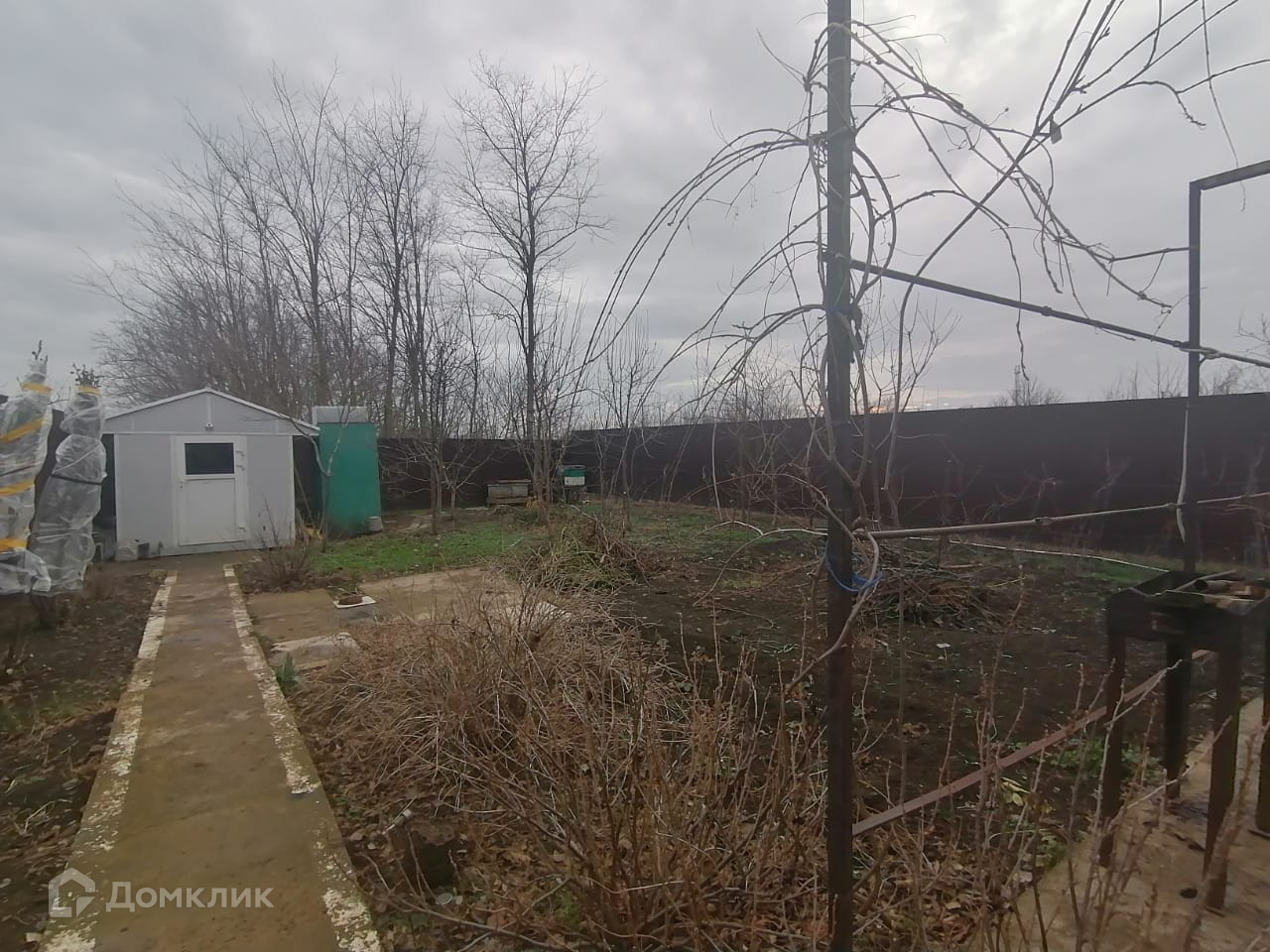Участок огорожен со всех сторон металлическим забором. Есть заезд во двор для авто.