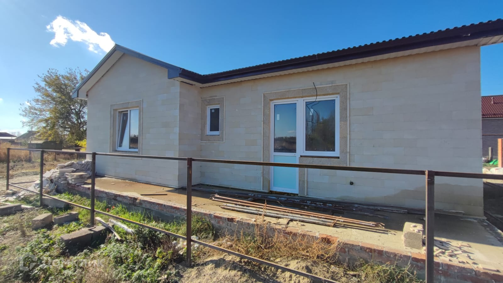 Дом выполнен из газоблока, облицован дагестанским камнем. Фундамент свайно-ростверковый, выполнен ЖБ армопояс по периметру дома. Крыша металлопрофиль, пластиковые стеклопакеты, входная дверь металлопластиковая. Свет по дому проведен.