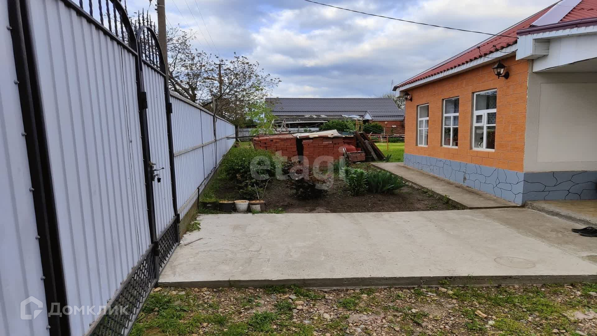 На участке имеются хоз. постройки: навес, гараж, летний туалет/душ. Двор и участок под навесом обсыпаны гравием, по периметру дома залита бетонированная отмостка.
