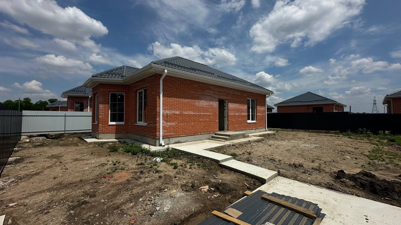 В перспективном и быстроразвивающемся районе с полным комплексом социальной инфраструктуры: магазины, аптеки, кафе, садики, школа, остановки общественного транспорта продам одноэтажный дом площадью 75 кв.м. Рядом с домом остановка школьного автобуса.