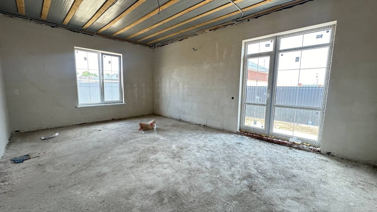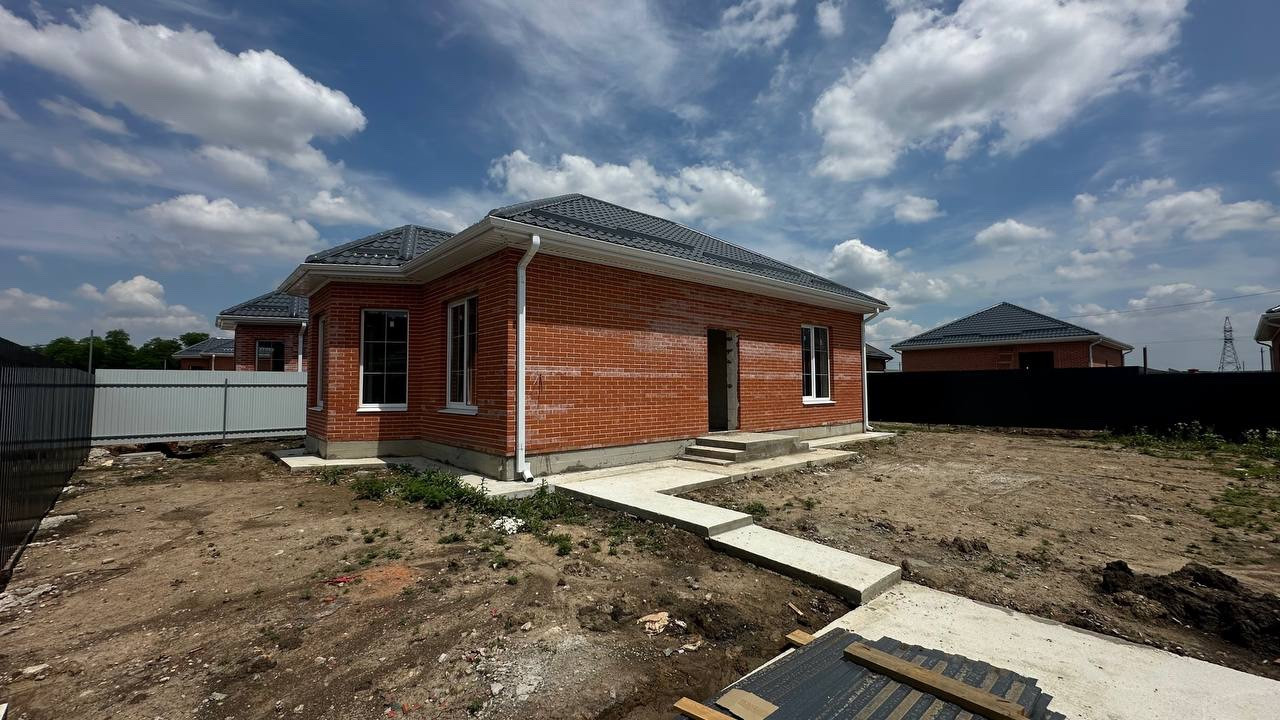 Одноэтажный дом с качественной предчистовой отделкой площадью 65 кв.м. продаю в перспективном и быстроразвивающемся районе с полным комплексом социальной инфраструктуры: магазины, аптеки, кафе, садики, школа, остановки общественного транспорта. Ходит школьный автобус.